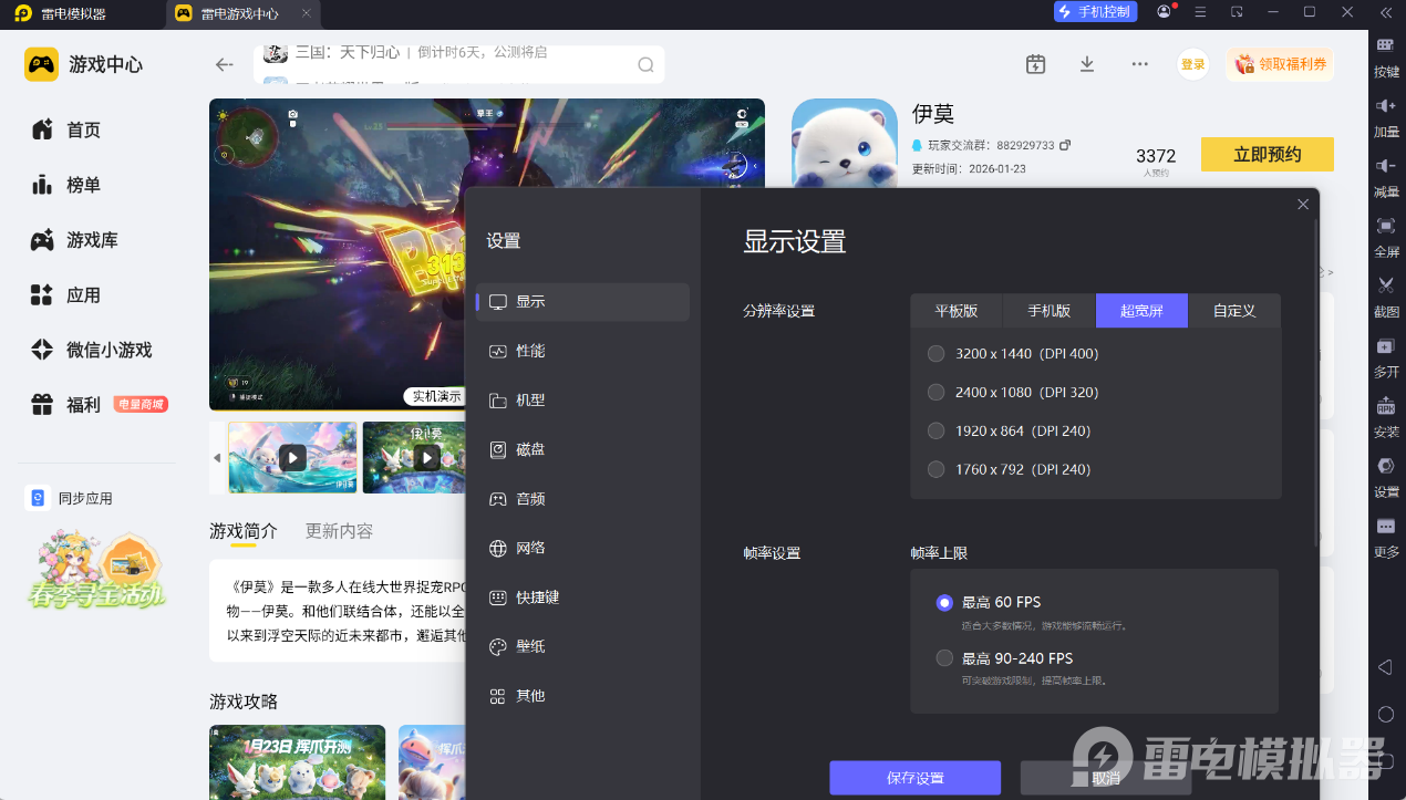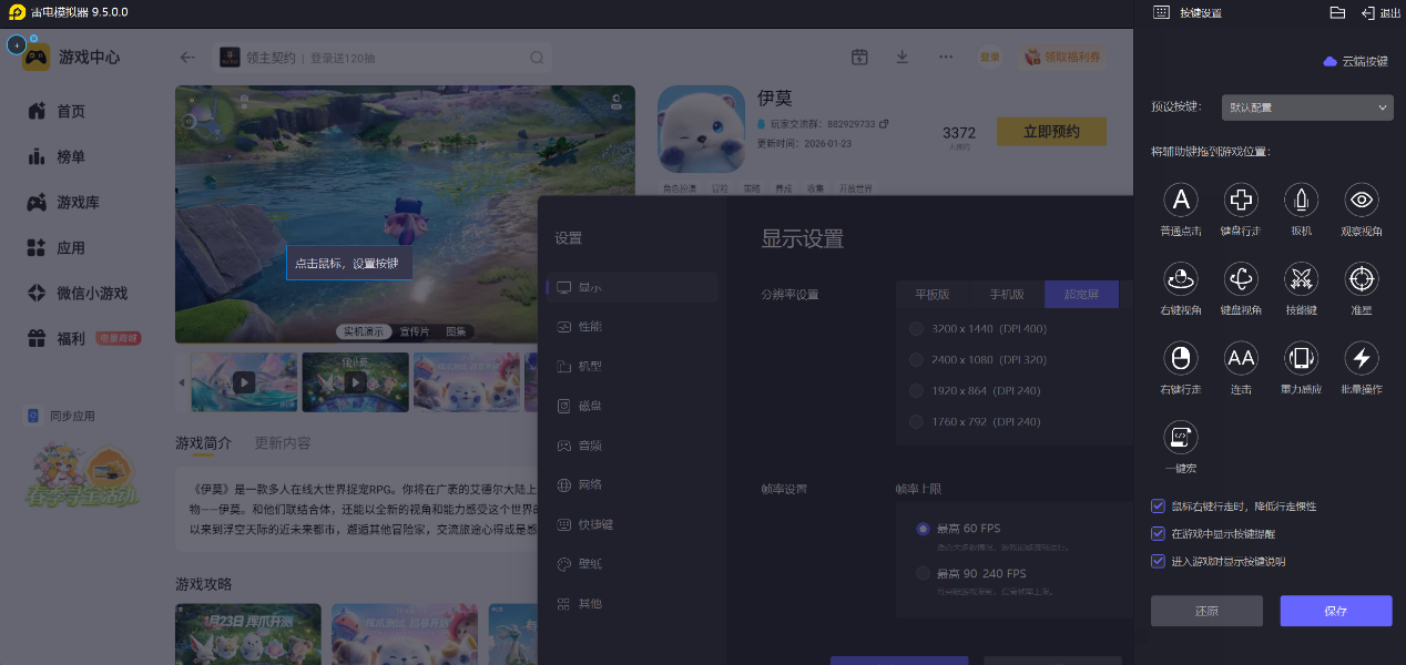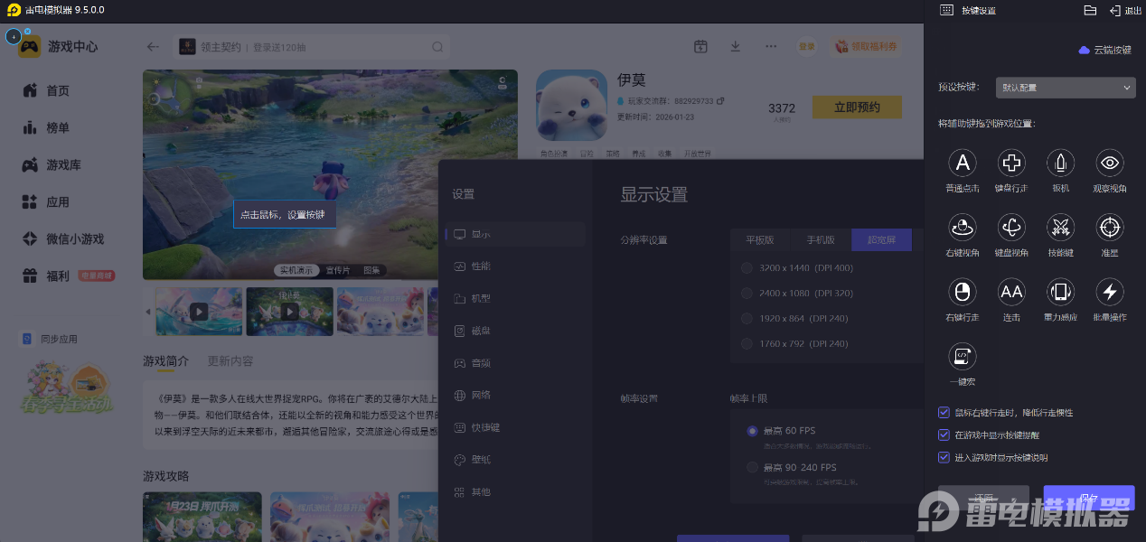 雷电模拟器的超宽屏显示模式,游戏中的角色立绘可呈现更多细腻细节,伊莫的材质纹理、场景装饰都能清晰展现,让玩家更直观感受生物的灵动与场景的精致。战斗与探索场景的视野范围得到有效拓展,画面不会被UI元素遮挡,无论是观察大陆生态环境还是参与即时对抗,都能拥有更开阔的观察视角。