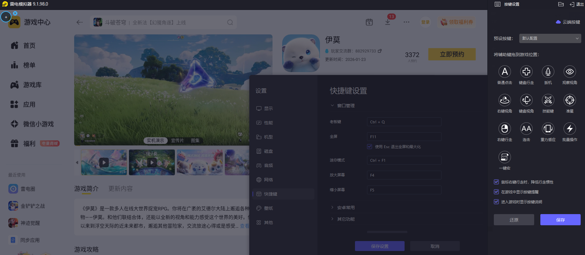 完成霜锋狼任务需要进行精准的场景移动、快速的NPC对话触发和及时的战斗操作把控,手机端触屏操作容易出现点击偏差、操作响应不及时的问题,会影响任务推进的速度与战斗捕捉的成功率。雷电模拟器支持键鼠自定义操控模式,玩家可以根据任务操作需求设置专属快捷按键,让每一步操作都能精准执行,快速完成任务中的各项指令,稳步推进任务流程。