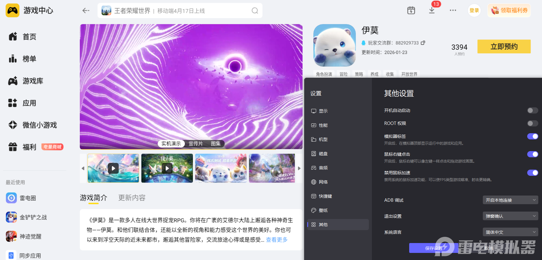 想要获得更舒适的伊莫游玩感受,大家可以使用雷电模拟器在电脑上体验这款游戏,能全方位提升整体游玩质感,轻松感受游戏的全部乐趣。