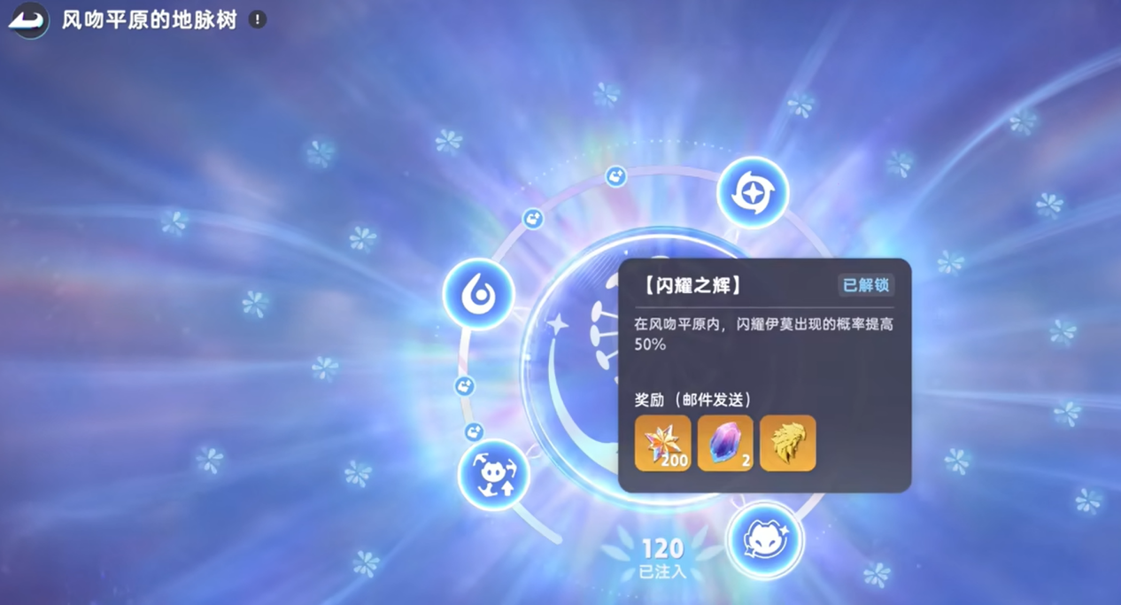 想要定向刷高价值闪光伊莫的,可以通过滋养生态刷闪。前期先收集110个琥珀注入地脉树,此时闪耀率可提高50%。还可以给地脉树添加滋养道具,额外提升出闪概率。滋养道具可以通过打全息训练或到全息商店兑换。不过,需注意的是,区域探索度需≥80%才能解锁滋养。以星骑士为例,打开地脉树中的滋养生态,选择鲸落浅滩区域,找到目标点位后,点击滋养,原地会生成一群星骑士,有闪光就抓,没出闪就全部清掉,再次滋养刷新。