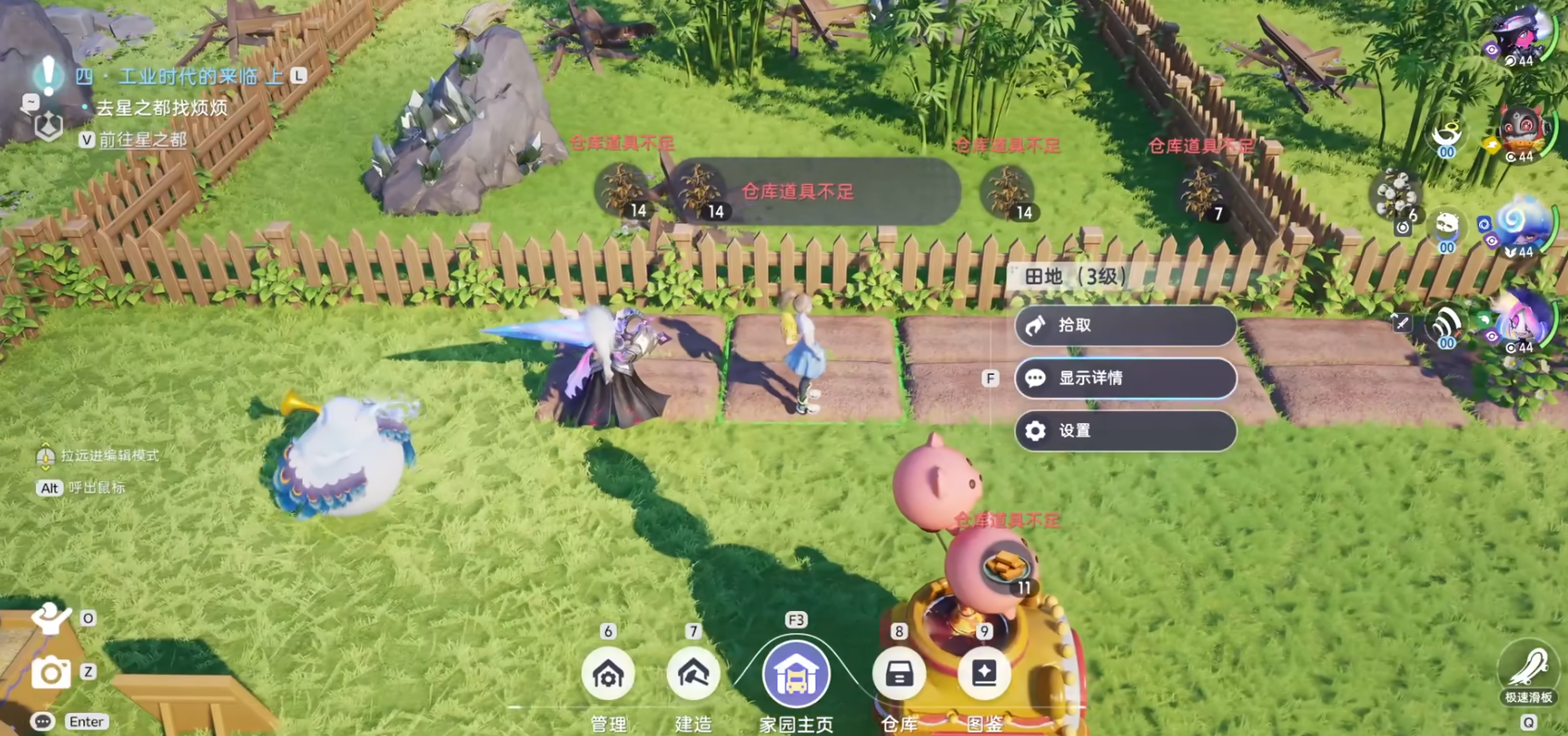 每位玩家都有专属的浮空岛家园与房车据点,玩家可以自由布置家园,摆放各类装饰、种植特色植物,打造个性化的专属空间。家园中还能孵化伊莫蛋、培育养成材料,也能和其他玩家交换资源、互相参观家园,让冒险之余拥有休闲放松的专属空间。