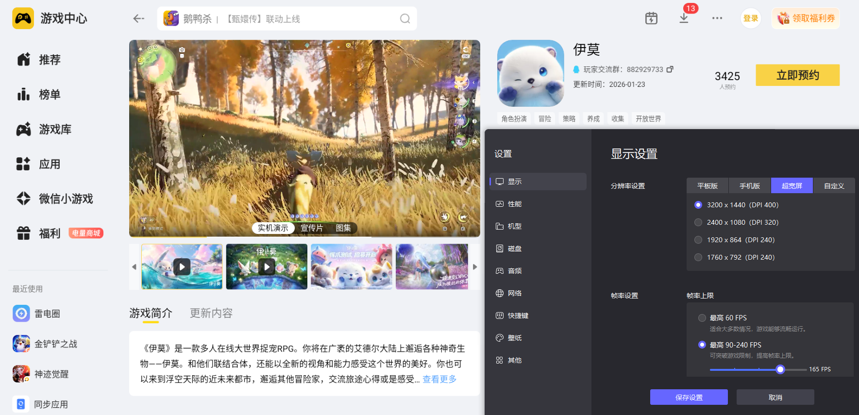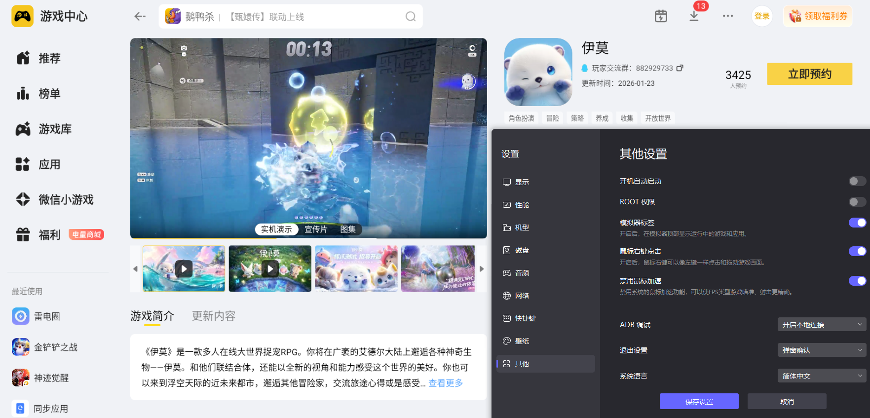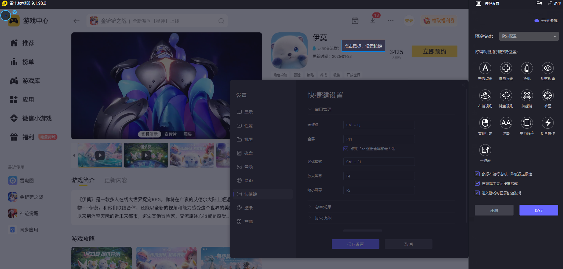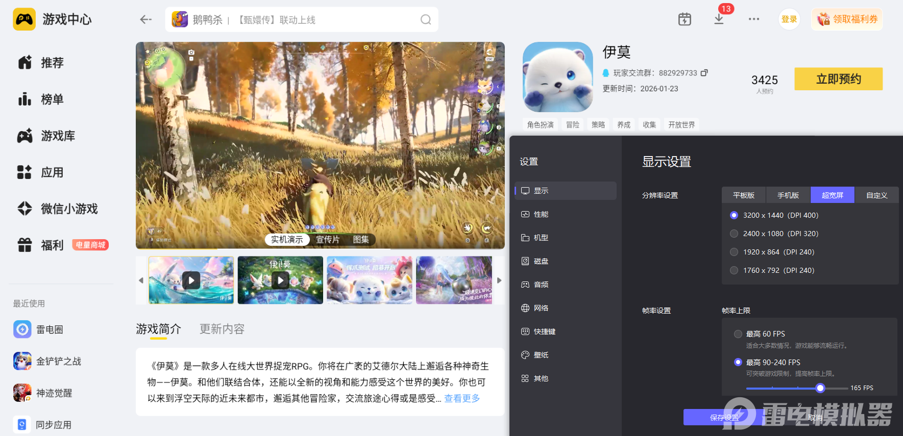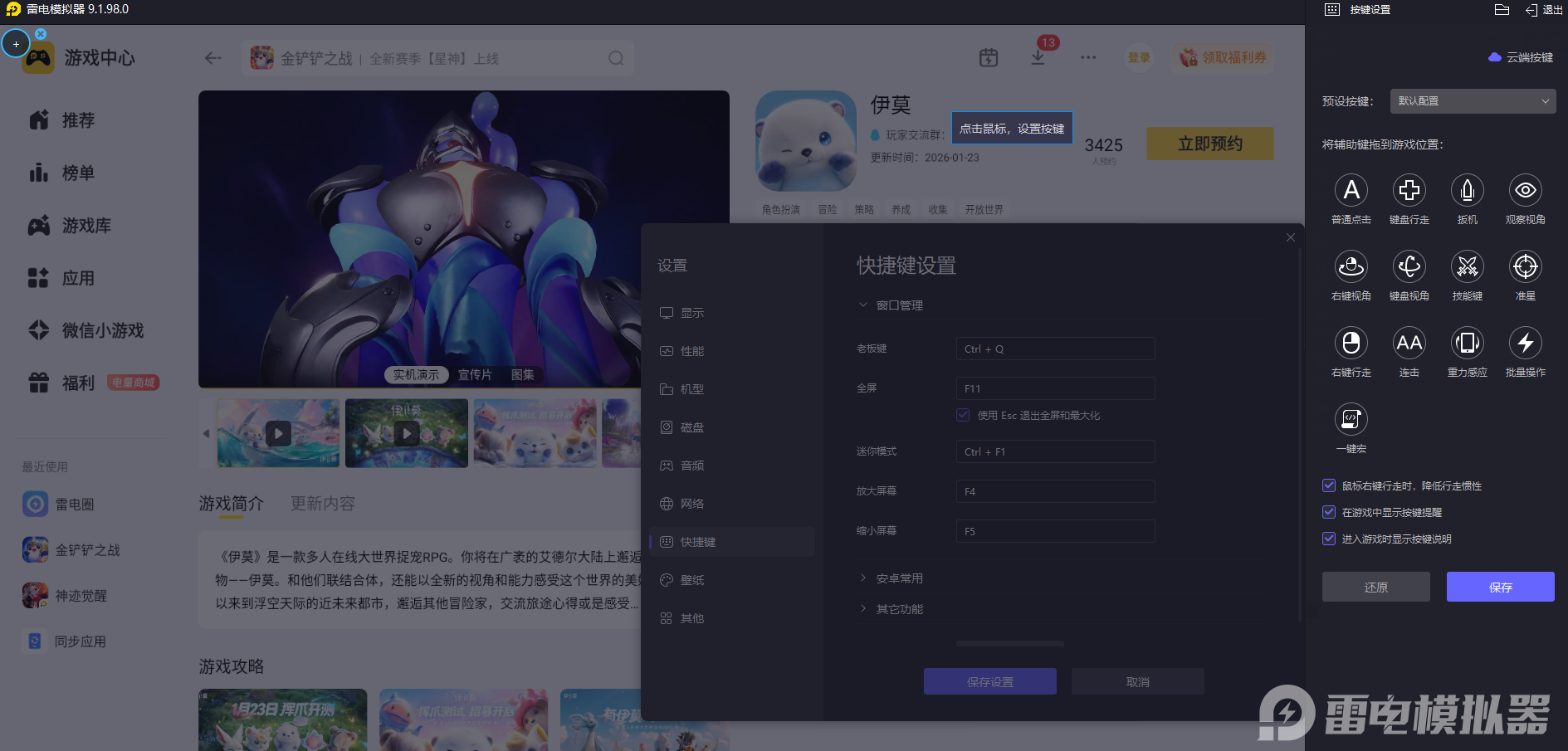 伊莫有着细腻的大世界场景与精美的伊莫立绘,探索和养成时需要完整的画面呈现来感受游戏美术质感,手机屏幕尺寸有限,场景细节与伊莫造型很难完整展现。雷电模拟器拥有更大的显示屏幕,而且搭配上4K分辨率,能清晰呈现游戏高清画面,完整还原每一处细节,让冒险的视觉体验更具沉浸感。