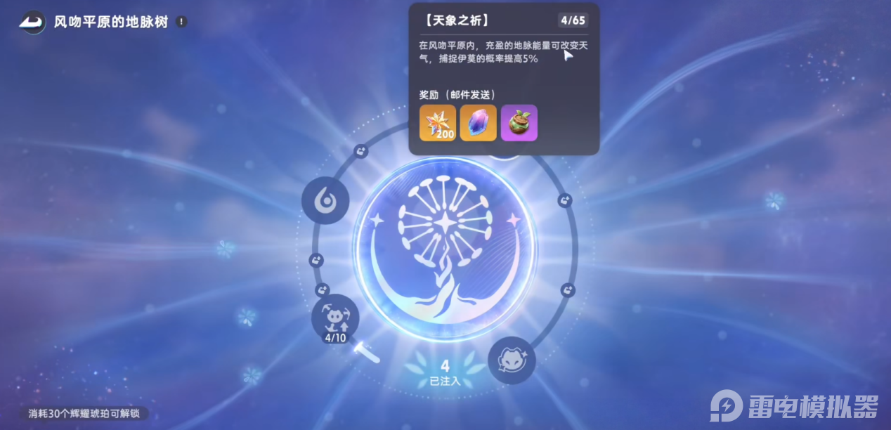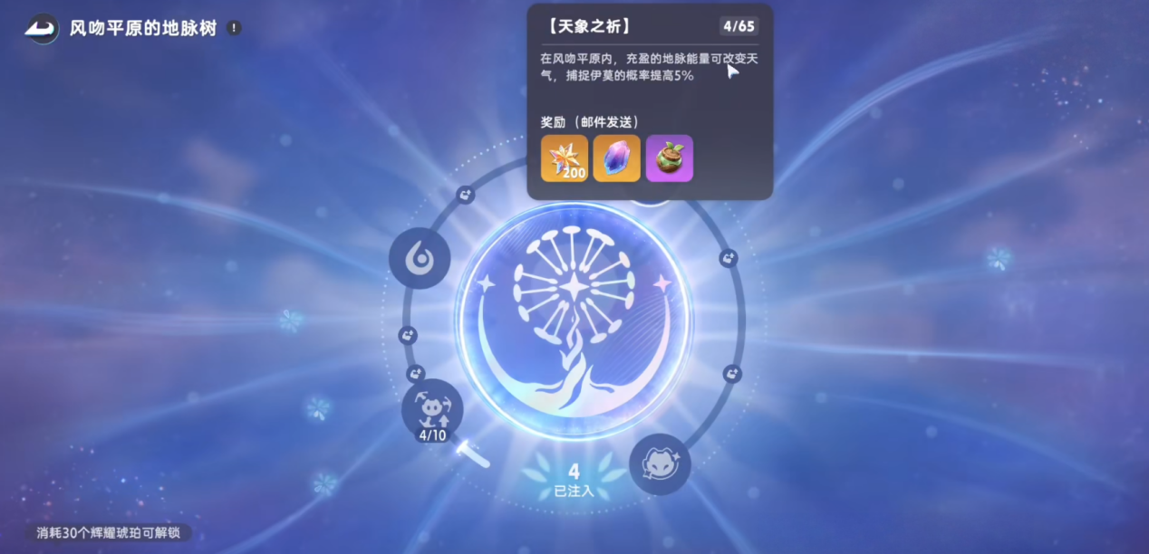 是游戏的增益玩法,每张地图都有专属地脉树,需先完成主线任务解锁玩法。玩家通过开启场景宝箱、击败野怪收集辉耀琥珀,集齐指定数量即可激活地脉树。激活后能提升对应区域伊莫的刷新频率与捕捉成功率,还能逐步解锁改变天气等特殊效果,助力更高效的探索与养成。