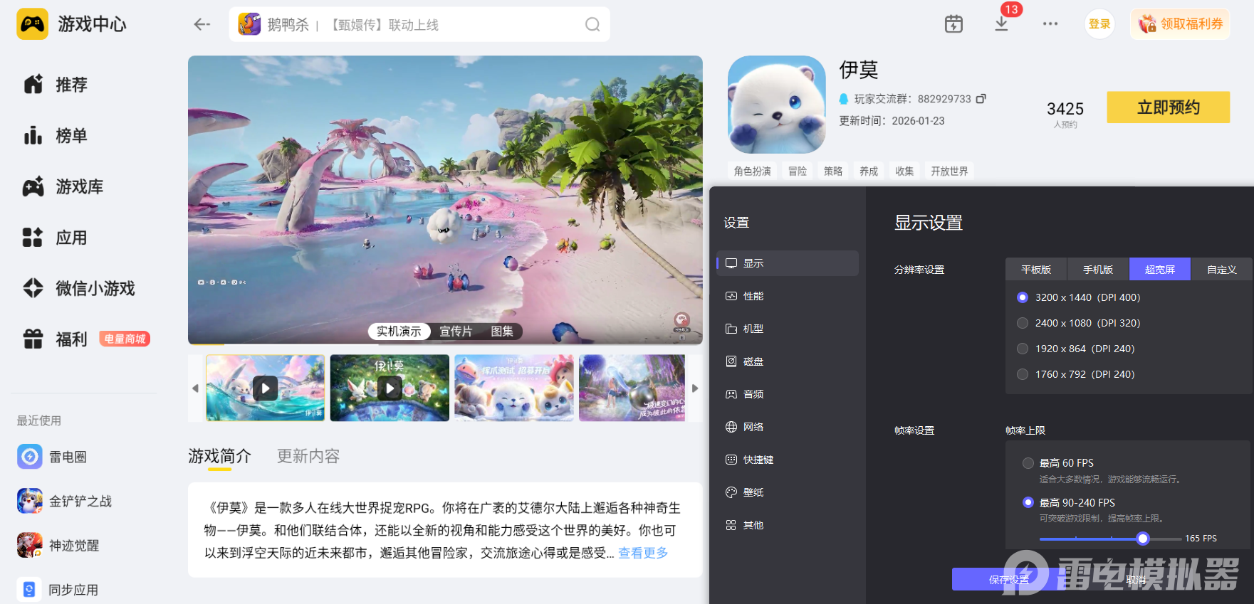伊莫有着细腻的场景建模和伙伴形象,手机端屏幕尺寸有限,做裂隙调查、主线探索等任务时,画面细节无法完整展现,观察战斗和场景细节也会有局限。雷电模拟器支持4K分辨率和大屏高清显示,能完整呈现游戏所有画面细节,清晰的画面效果能让任务场景、战斗画面更直观,做任务时能更好地感受游戏画面质感。