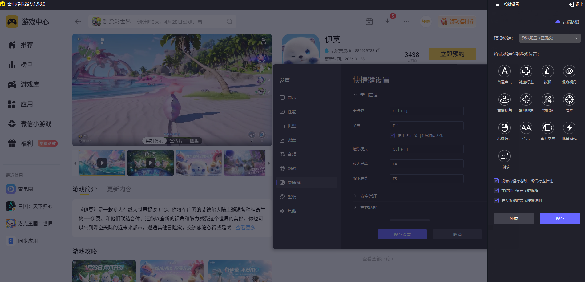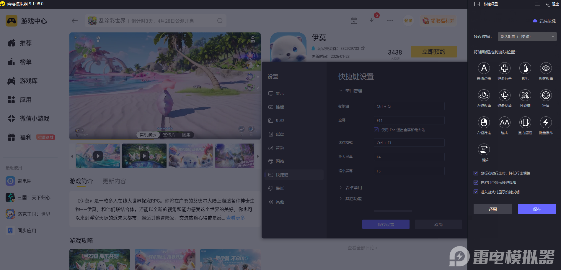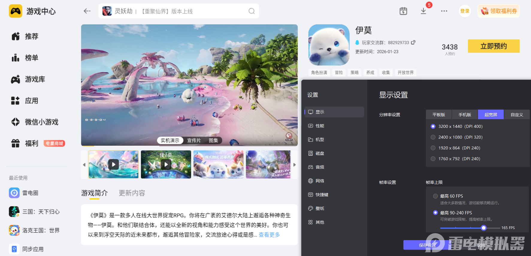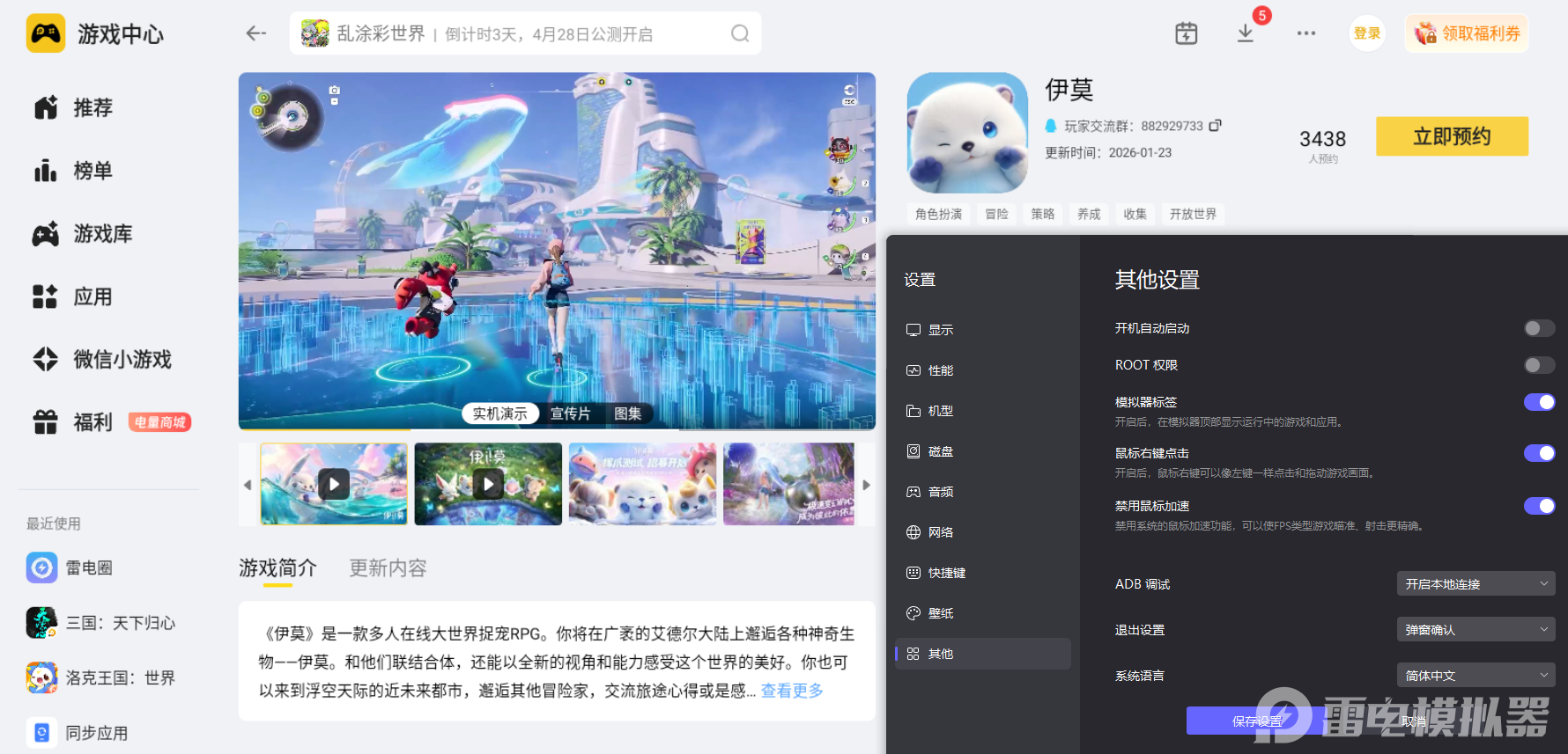 在这里,小编建议大家在电脑上用雷电模拟器运行伊莫,能够带来更优质的游戏体验。电脑大屏游玩的整体感受更为舒适,长时间进行宠物捕捉、野外探索等玩法时,也能保持更放松的游玩状态,让整个游戏过程更惬意。
