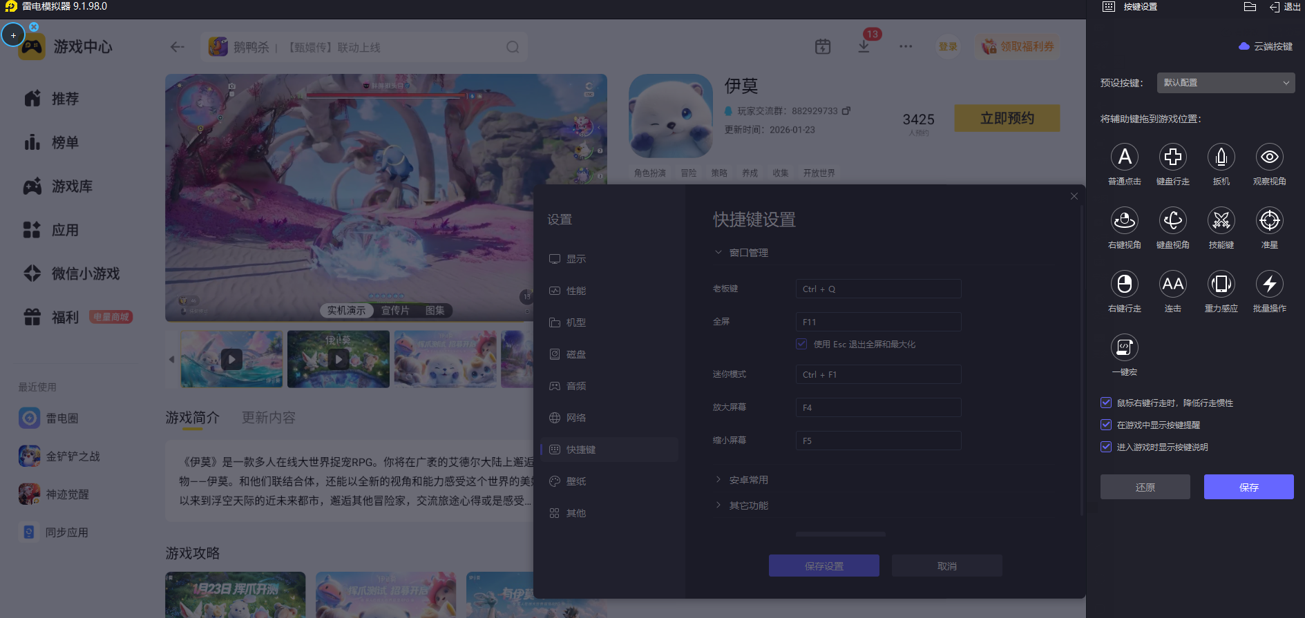 这套四宠阵容作战时,需要精准把控技能释放顺序,及时切换技能衔接输出与续航,多宠配合的操作需求较高。雷电模拟器支持键鼠自定义操控,可将宠物技能绑定专属按键,能精准触发每一个技能,轻松完成技能衔接,让阵容的输出和辅助配合更流畅,大幅提升实战操作的精准度。