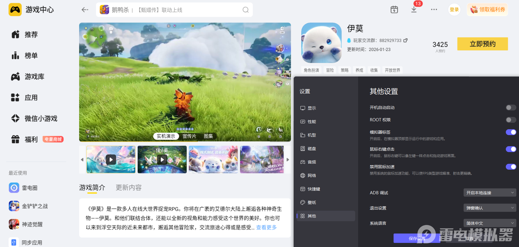其实,大家可以尝试用雷电模拟器在电脑上游玩这个游戏,电脑端的游玩体验远优于手机端,能从多个方面提升游戏感受,让前期搭配阵容作战、培养宠物的过程变得更轻松,也能更好地感受游戏的核心玩法。