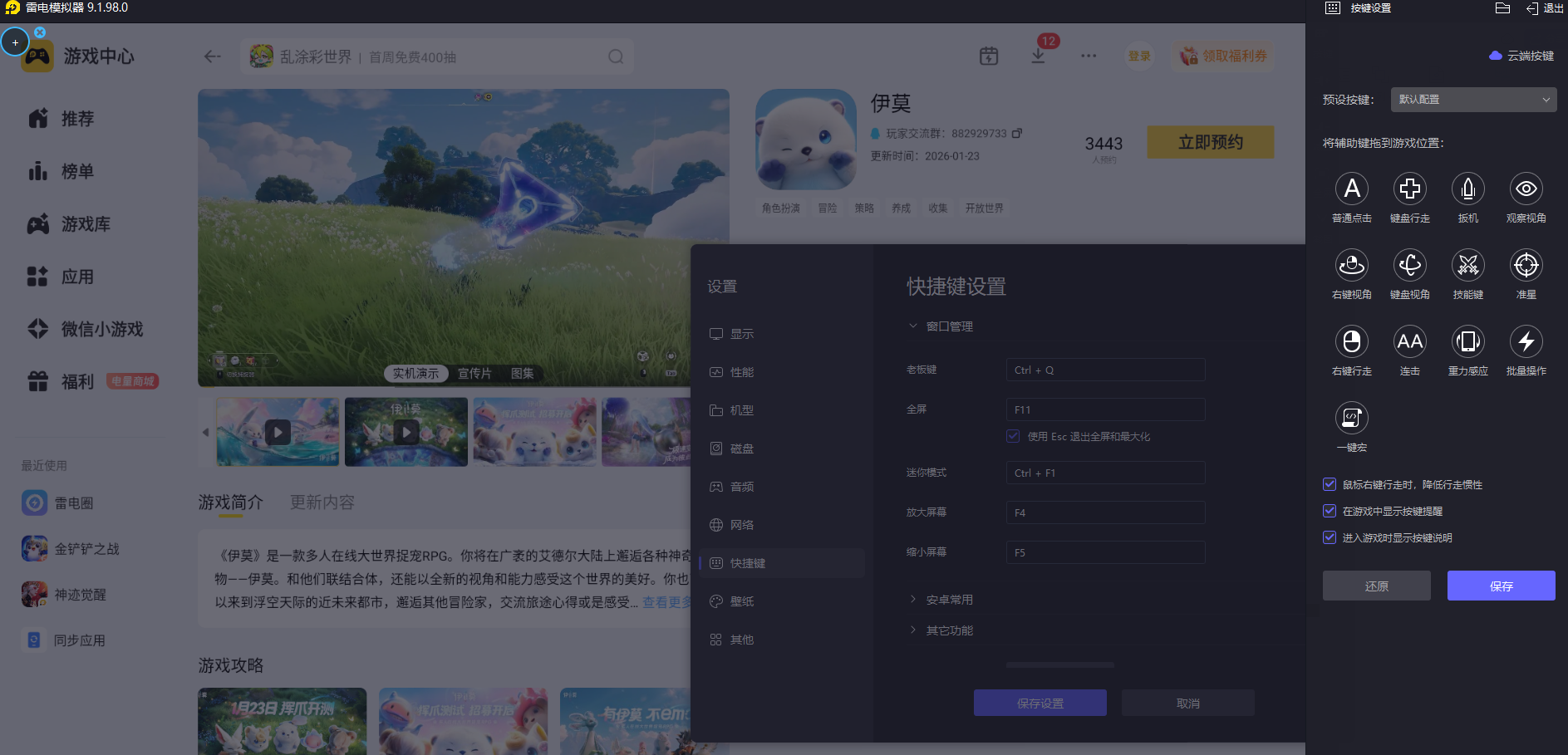 地宫解锁需要多步骤精准操作,从地图寻路到机关交互,触屏操作容易出现点击偏差,复杂解密时也无法快速完成指令触发。雷电模拟器支持键鼠自定义设置,可根据解锁操作习惯绑定专属按键,让寻路、交互、解密等操作更精准,高效完成全部解锁流程。