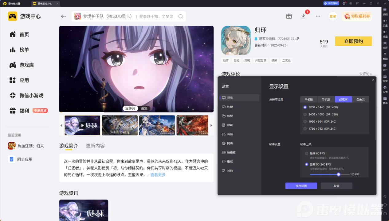 想要完美适配游戏画质、提升操作手感,雷电模拟器是不二之选。