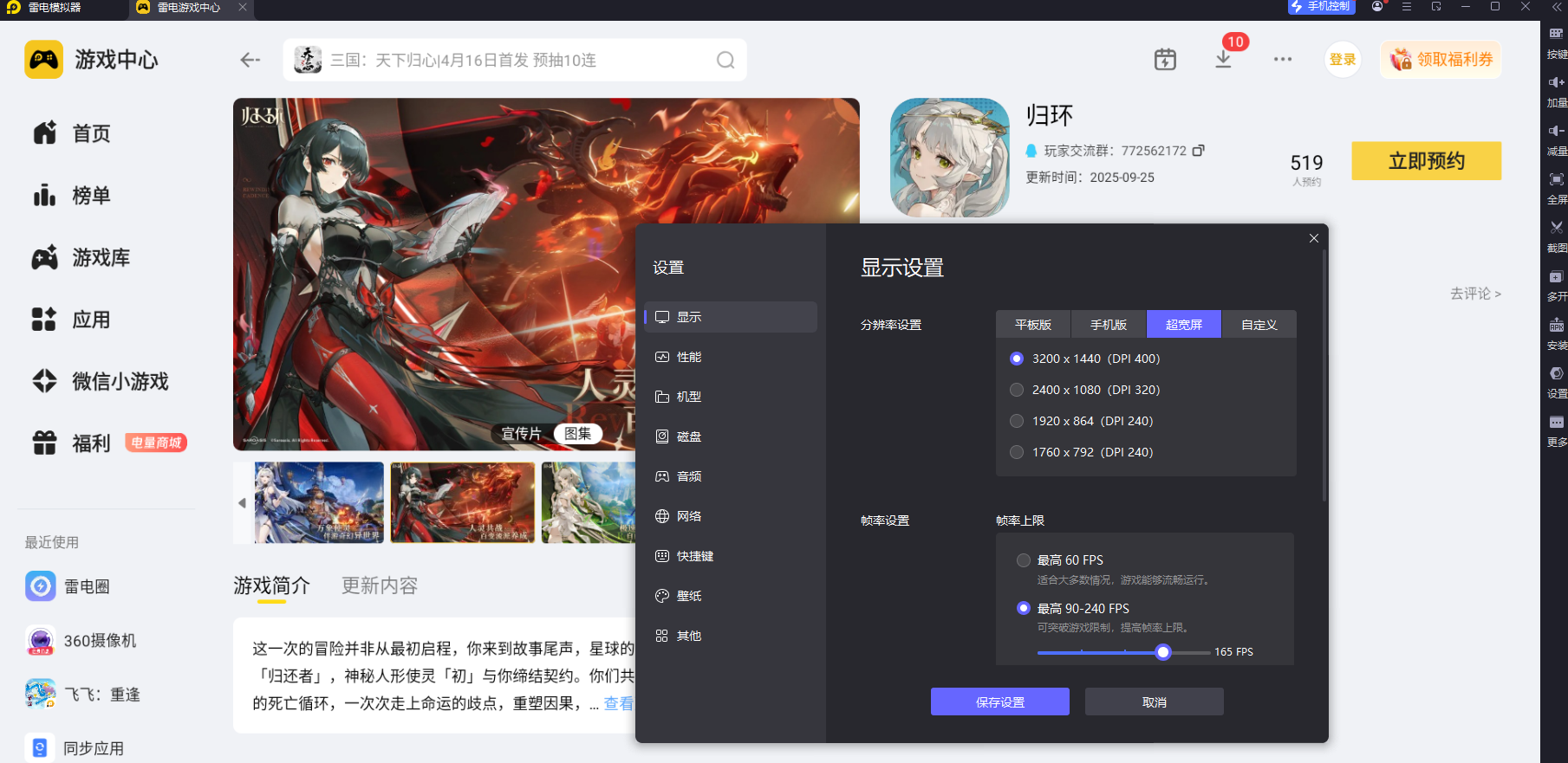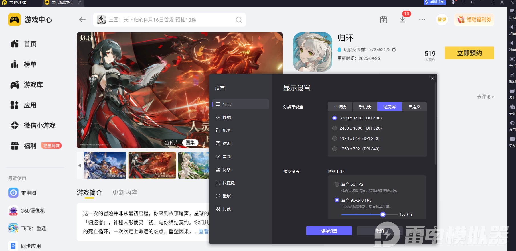 归环打造了细腻的场景建模、精致的角色形象与绚丽的技能特效,小屏设备难以完整展现这些视觉细节。雷电模拟器支持高清画面输出,4K分辨率能完整呈现场景纹理、特效层次与角色细节,清晰展现游戏内的每一处设计,让探索与战斗过程拥有更沉浸的视觉体验。