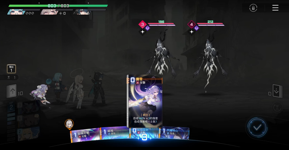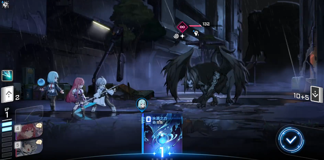 同时,露雪需要高频使用技能会快速累积精神压力,突破阈值会触发“精神崩溃”,导致手牌污染、技能失效等负面状态,因此必须搭配具备主动清除压力能力的队友,维持战斗稳定。