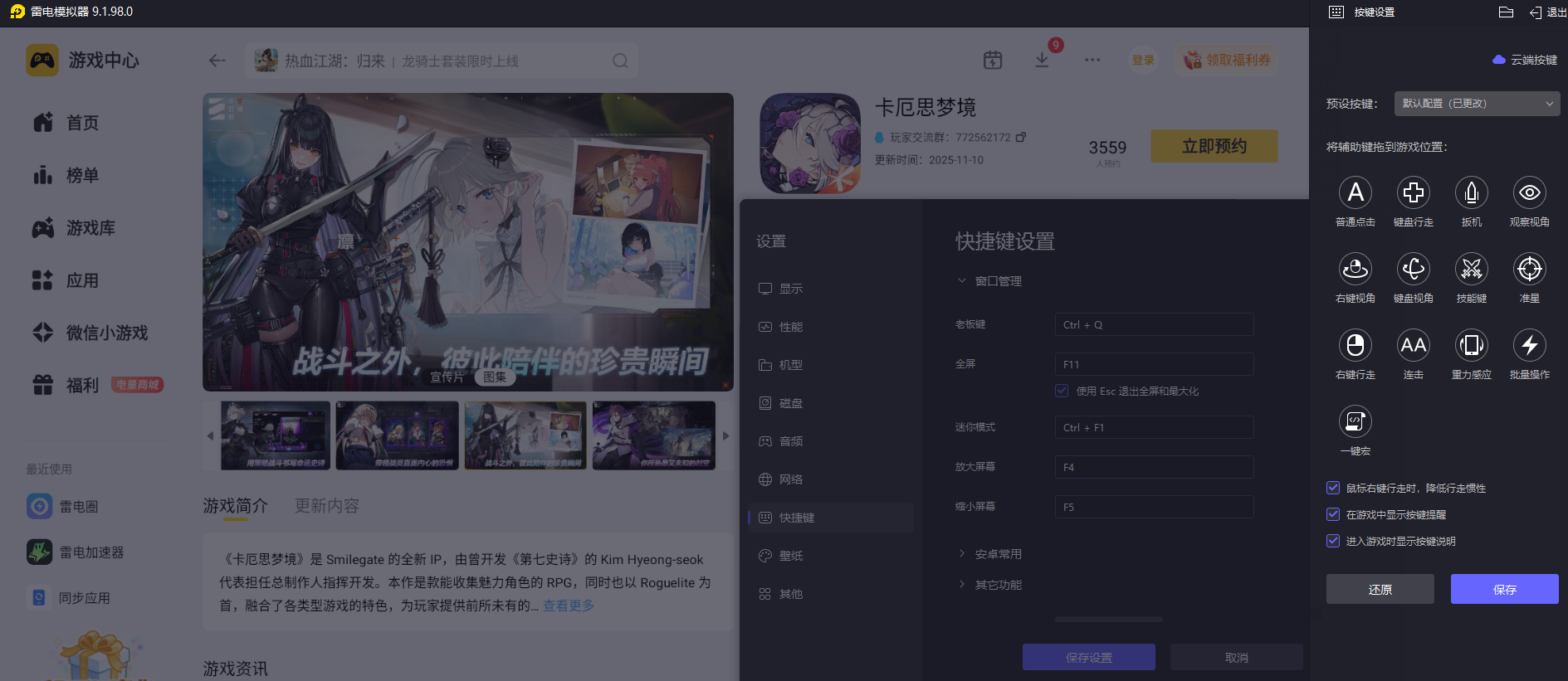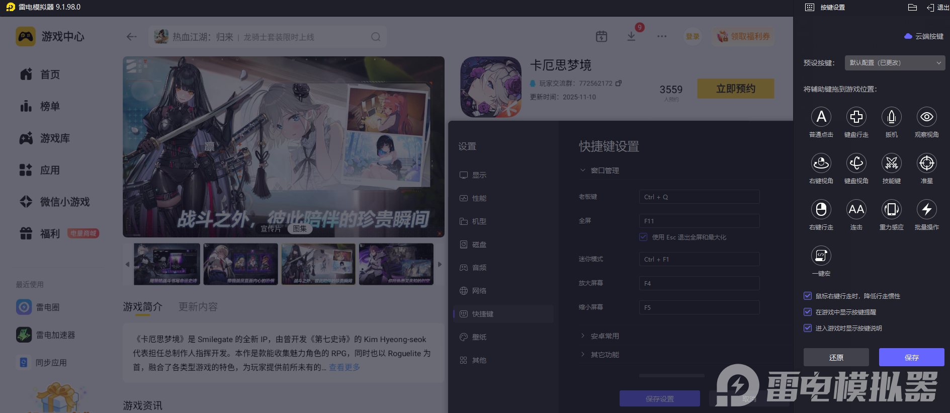 部分问答秀会有简短的选择时限,需要快速点选心仪选项,手机触屏操作偶尔会出现点击位置偏差的情况。雷电模拟器支持键鼠操控,点击选项的位置更精准,还能根据习惯设置操作按键,选答案时反应更及时,应对限时问答也能轻松完成选择,不会耽误互动节奏。