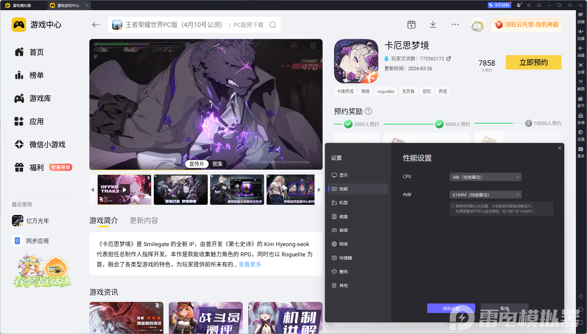 雷电模拟器——卡厄思梦境电脑版的好帮手