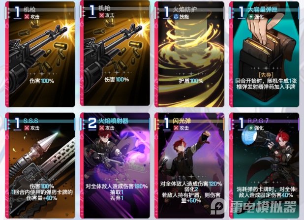 卢卡斯的"火焰喷射器"具备出色的范围清场能力,对全体敌人造成180%伤害并抽取1张卡牌;大招"全弹发射"则在密集敌人环境中释放出毁灭性的大范围爆炸效果。在遭遇护盾类敌人时,"闪光弹"能造成额外50%伤害并附加弱化效果。