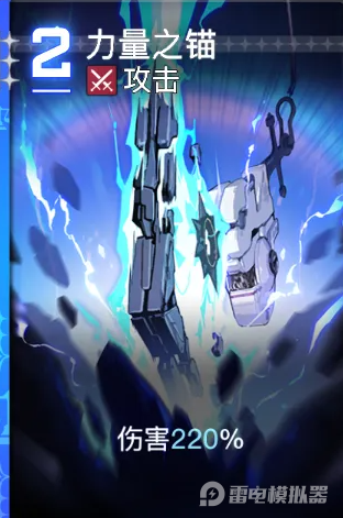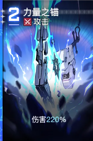 群攻控场・力量之锚:大范围群体攻击,附带震慑控制,清杂兵效率极高。释放后全队获得短时间减伤,与补充能量联动,可快速稳住血线,降低开荒容错压力。CD适中,能无缝衔接普攻与锚炮,把控战场节奏。
