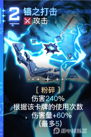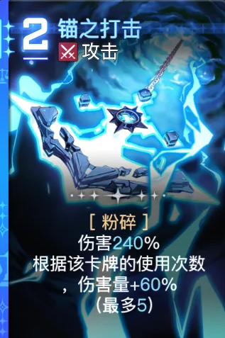 核心输出・锚炮:小春的灵魂技能,释放后为全队附加攻击增益,且每触发一次就叠加伤害倍率。通过锚点指定上手、配合灵光一闪,可一回合连发多次,瞬间融化BOSS。粉碎词条进一步放大伤害,每多一张锚炮卡,伤害提升60%,爆发上限拉满。
