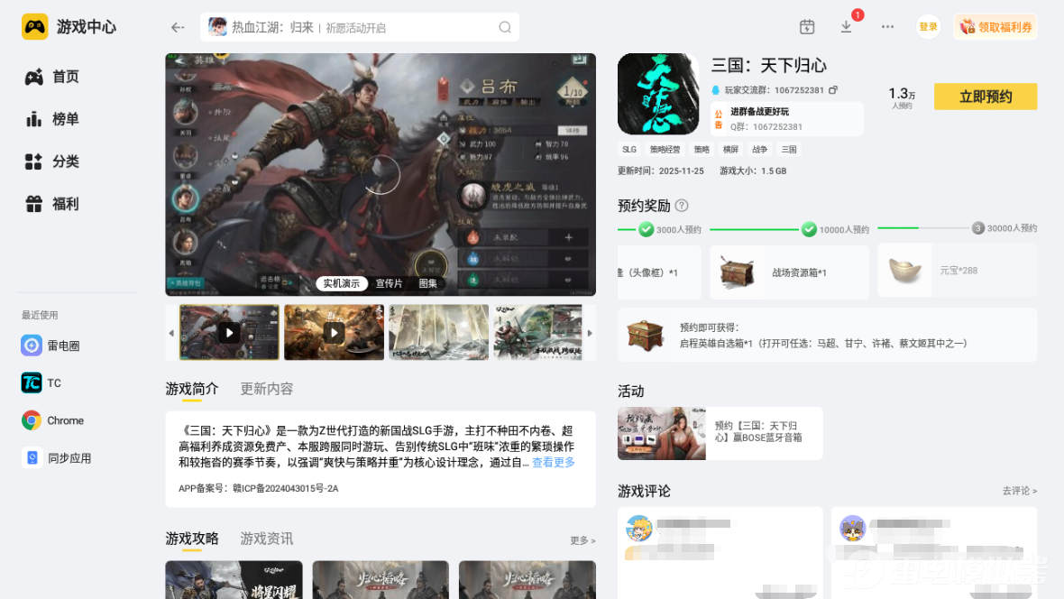 为了能让大家到时的游戏感受更好,尤其是去进入其中来感受清晰的大屏画面,建议是可以去通过雷电模拟器来运行的,该软件支持的4K高分辨率以及稳定的165hz刷新模式,让玩家可以在PC大屏上可清晰展示兵力分布、技能特效等细节,这对我们开荒期资源点抢占、敌军动向观察而言还是非常有帮助的,让小伙伴们可以去提前选择到最优的发育路线。