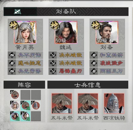 这是一支主打中后期爆发的阵地队。开局阶段,刘备通过天赋【仁德】与觉醒【桃园结义】稳住阵脚,为魏延、黄月英创造发育环境。进入中期,魏延的【流血】开始叠加,黄月英的【机巧】层数逐渐升高。战至后期,魏延触发流血结算并获得穿甲,黄月英的机巧伤害与控制频率达到峰值,二者形成毁灭性的输出联动,终结战斗。