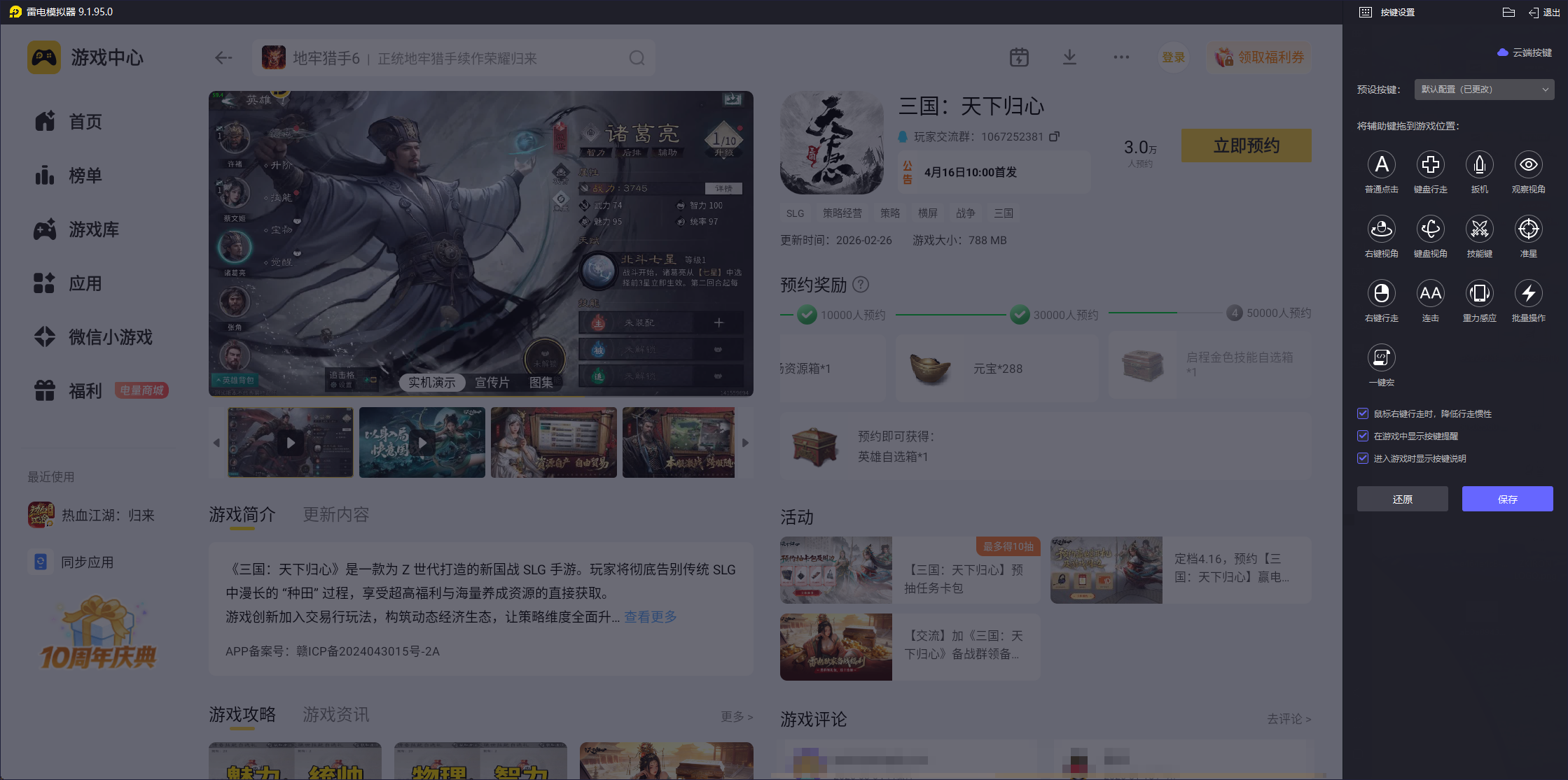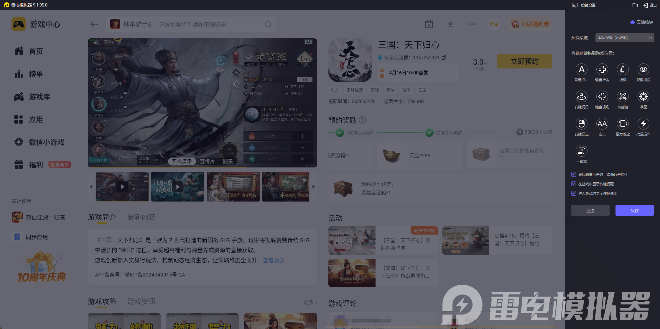 对于刚踏入三国天下归心乱世的主公而言,开服第二天是奠定前期优势、规避开荒陷阱的关键节点,这份三国天下归心开服第二天攻略将为你梳理核心玩法与资源分配技巧,帮你高效推进进度、稳步提升战力。掌握三国天下归心开服第二天攻略的核心要点,再搭配雷电模拟器游玩,能让开荒过程更顺畅,轻松拉开与其他玩家的差距,快速站稳脚跟。