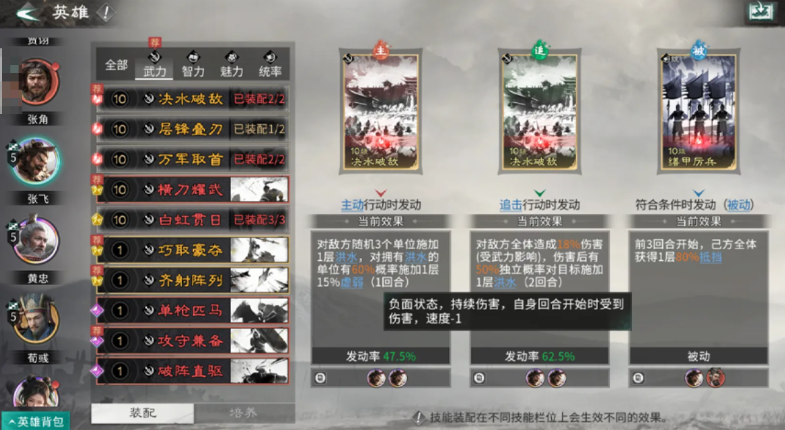 张飞:能抗能打,前排承伤核心,可对敌方施加虚弱 / 破甲减益,大幅降低团队承伤压力,同时提供范围伤害。与马超、蔡文姬组成 “铁三角”,三天即可成型,适配所有开荒场景,后期还能平滑转型桃园阵容,容错率拉满。