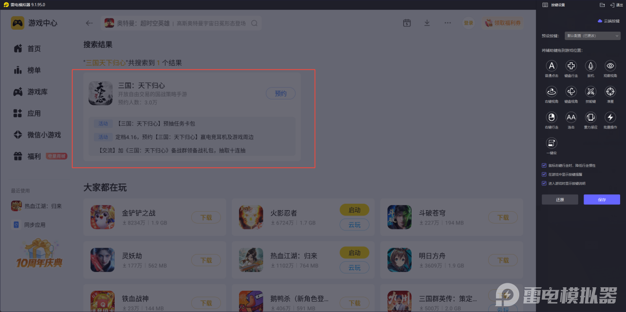 雷电模拟器——三国天下归心电脑版的好帮手