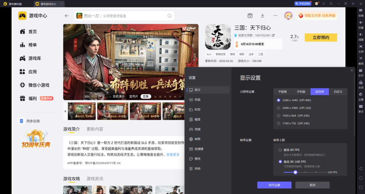 想要将这些三国天下归心武力技能的效果发挥到极致,推荐使用雷电模拟器在电脑上体验。首先,雷电模拟器支持高分辨率输出,能将游戏画面清晰地呈现在大屏幕上。无论是“层峰叠刃”叠加的无视防御层数,还是敌方武将身上挂着的溃逃、虚弱等负面状态图标,其倒计时与特效都能一目了然。