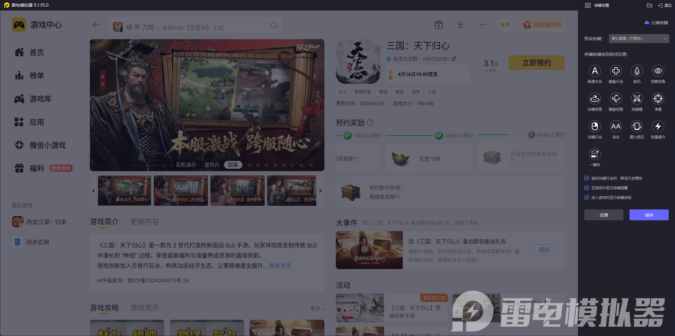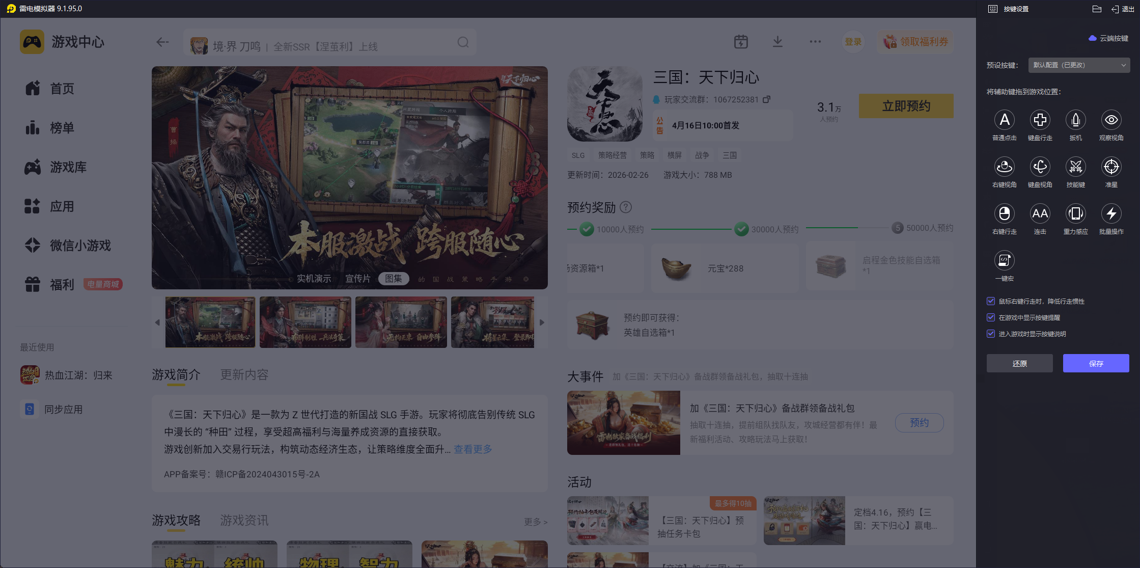 相信你已经掌握了实用的三国天下归心主力阵容搭配技巧,想要轻松玩转这些阵容、提升战场胜率,推荐使用雷电模拟器游玩。