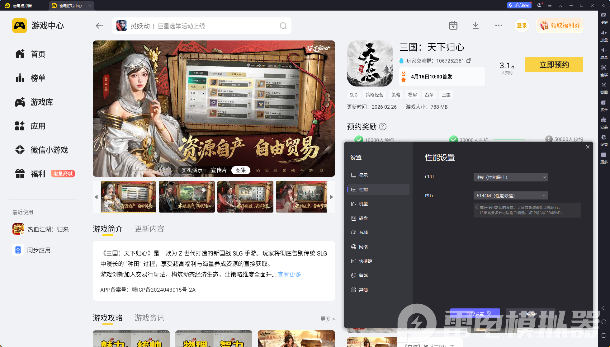 性能稳定不卡顿,长时间挂机无忧。搭配阵容后,日常开荒、资源收集需长时间挂机,雷电模拟器性能稳定,可全程流畅运行,不会出现卡顿、闪退问题,即便长时间挂机培养武将、刷取阵容养成材料,也能稳定运行,节省玩家时间,助力阵容快速成型。