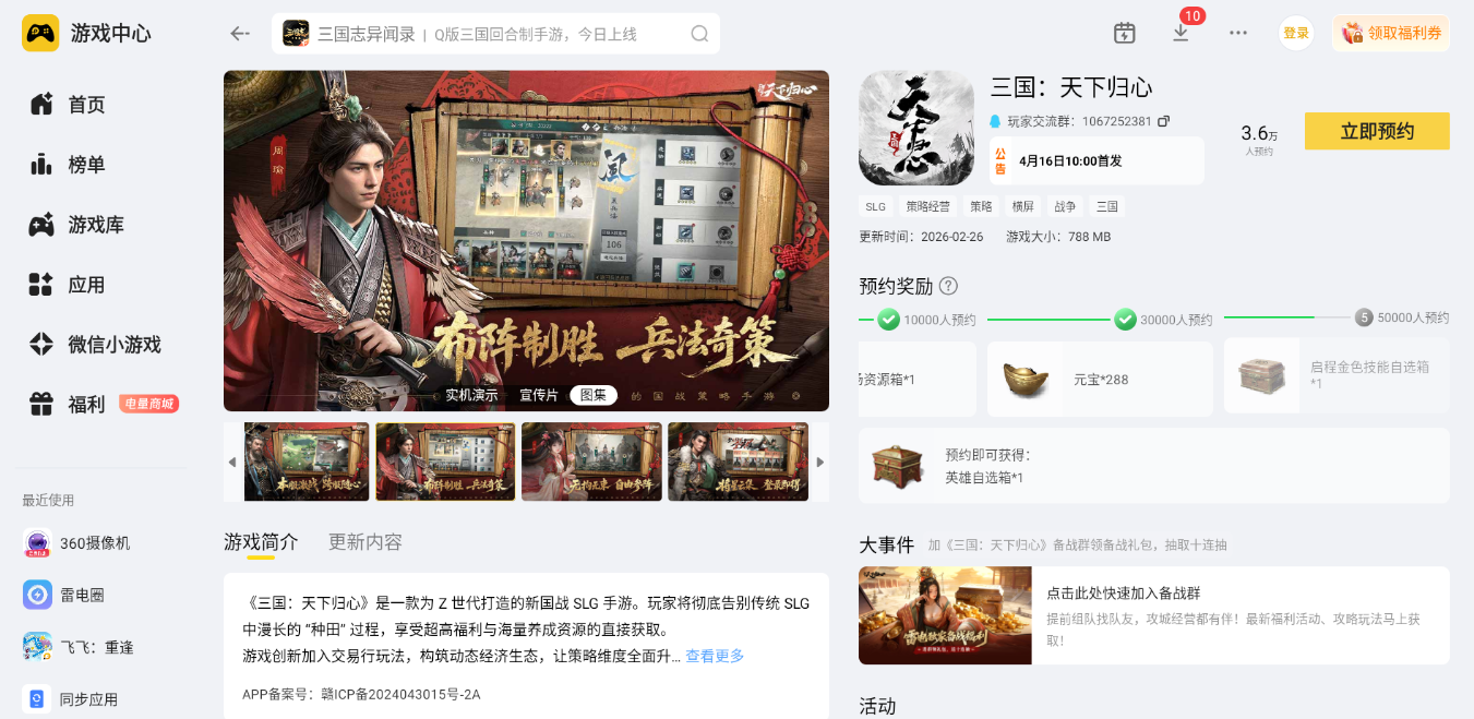很多喜欢三国SLG手游的朋友,都在寻找稳定好用的三国天下归心下载渠道,想尽快体验这款游戏的策略征战乐趣。面对市面上多样的下载入口,选对正规的三国天下归心下载渠道,才能保证安装顺利,安心感受游戏里的三国乱世玩法。接下来就为大家分享实用的下载推荐,帮你找到合适的方式,畅快开启这段三国之旅。