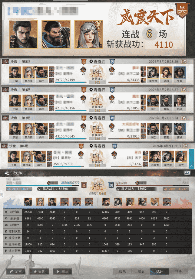典韦反击队主要依靠典韦挨打反击造成伤害,由黄月英和携带的3个五斗米祭提供高额的续航,在面对敌方中低战力的队伍时有非常不错的连穿能力,面对高战队伍也有一战之力。