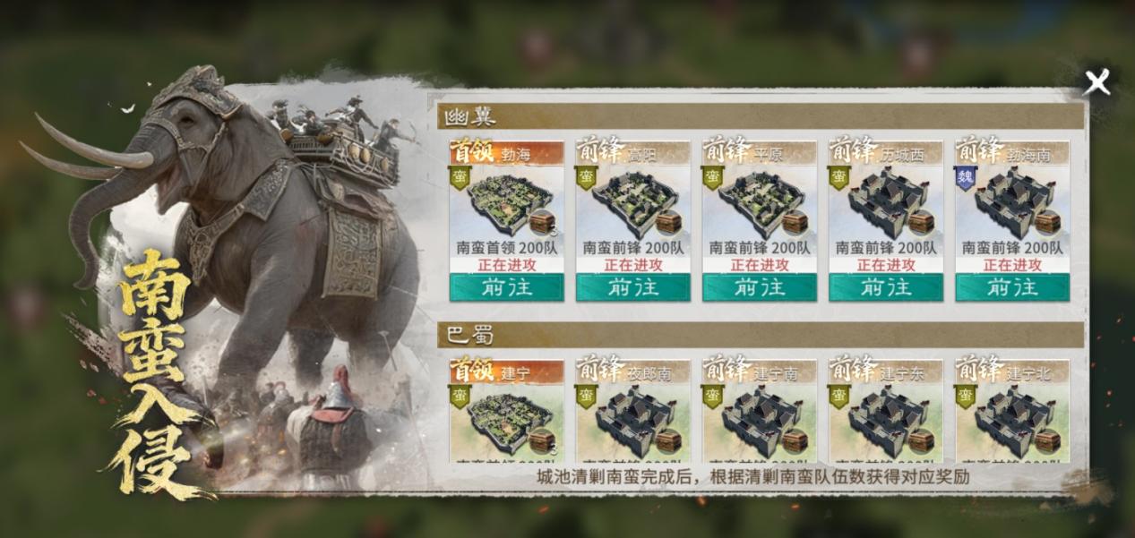 除攻城战斗外,本服沙盘还将迎来阶段性南蛮入侵——蛮军会随机突袭城池,待主公领兵清剿!为沙盘博弈增添更多变数与乐趣,战场激情不降温!