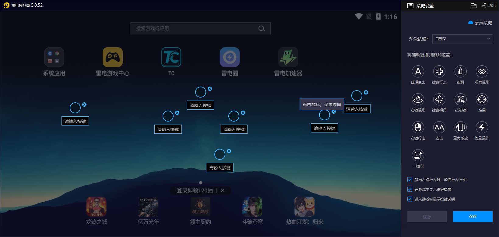 雷电模拟器为玩家内置了很多不同的热门游戏预设按键方案,无需大家去手动调试即可快速上手,大幅降低操作门槛,同时支持玩家根据游戏的布阵、指挥、技能释放习惯自定义键位,把复杂操作简化为键鼠组合,避免触屏误触的问题,而且无论是拖拽布阵、指挥部队,还是释放战法,都能通过键鼠精准响应,大幅度的去提升玩家的操作流畅度。助力各位去轻松应对高频重复任务,减少操作失误,让玩家更专注于战法搭配、战术制定等核心策略环节,提升战斗与任务完成效率。