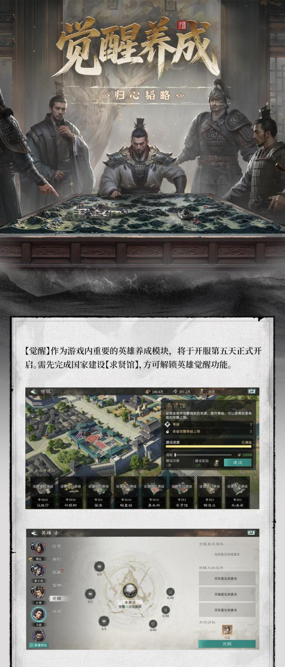 当开服来到第五天,全新的养成系统【觉醒】也将对外开放。作为游戏重要的养成模块,飞弟火速为大家带来相关功能介绍,希望能帮助各位主公快速了解该系统。