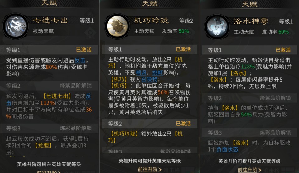 赵云天赋【七进七出】使其在受到直接伤害或成功闪避时均可发起反击,并在闪避时额外造成群体伤害。
