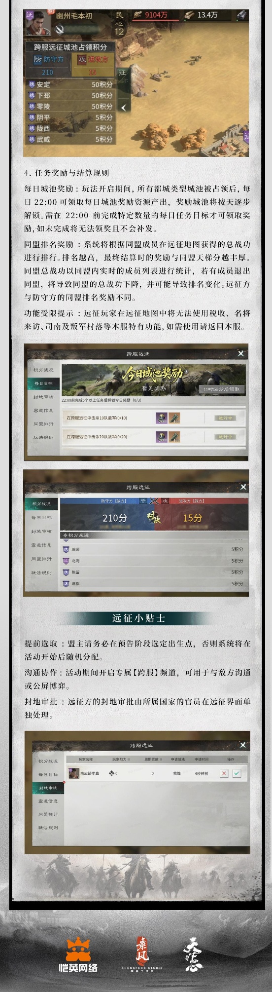 在《三国:天下归心》中,本服一统不是赛季结束,而是崭新征程的开始!随着本服沙盘统一进程渐入尾声,真正的风云即将席卷天下。【跨服远征】即将开启!