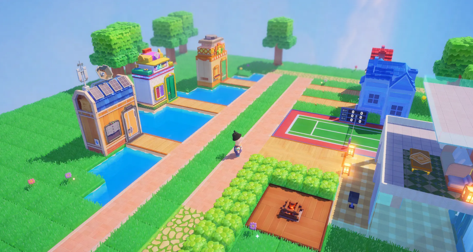 居民生活与活动区则是配套足球场、篝火营地、篮球框等互动设施,打造烟火气满满氛围,住宅可集中放置在星球边缘,作为隔离带,又方便后期扩展;店铺集中放置在道具中心,避免居民分散难寻,同时提升商业效率。特色功能区内,我们可以去设置火箭专属区,将火箭置于C位,后方搭配小树林,凸显科技感与自然感的融合。