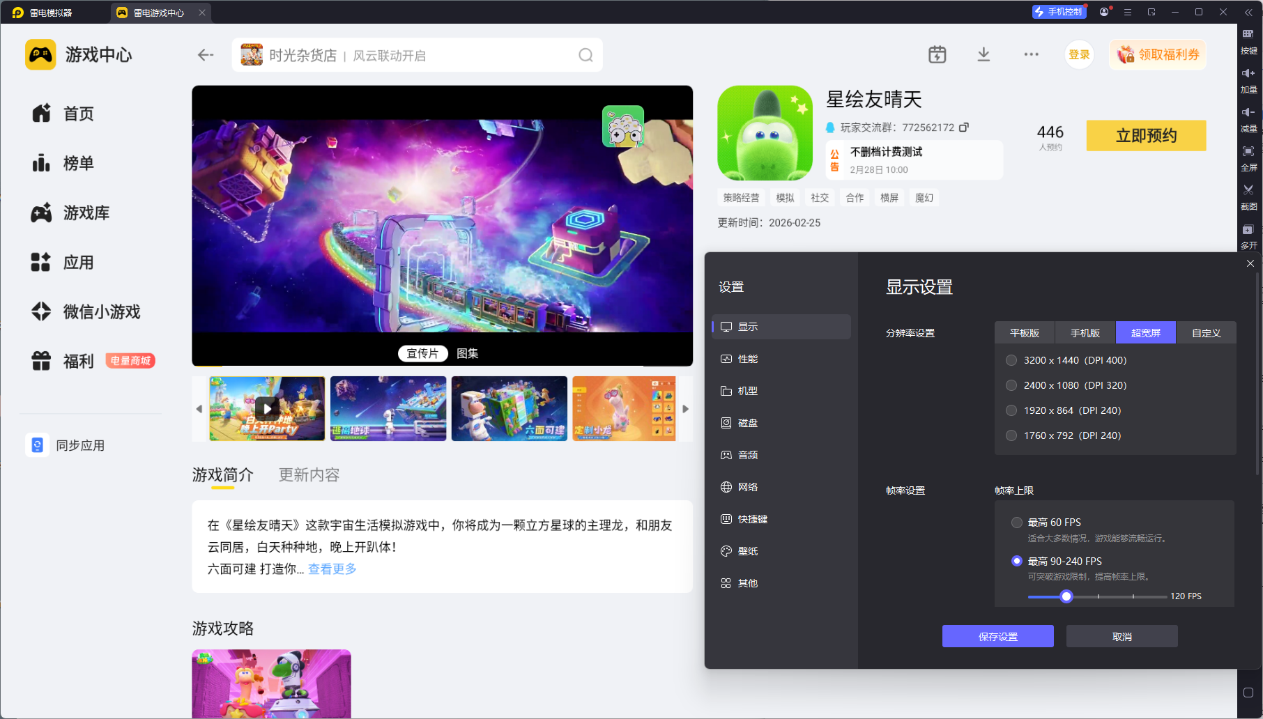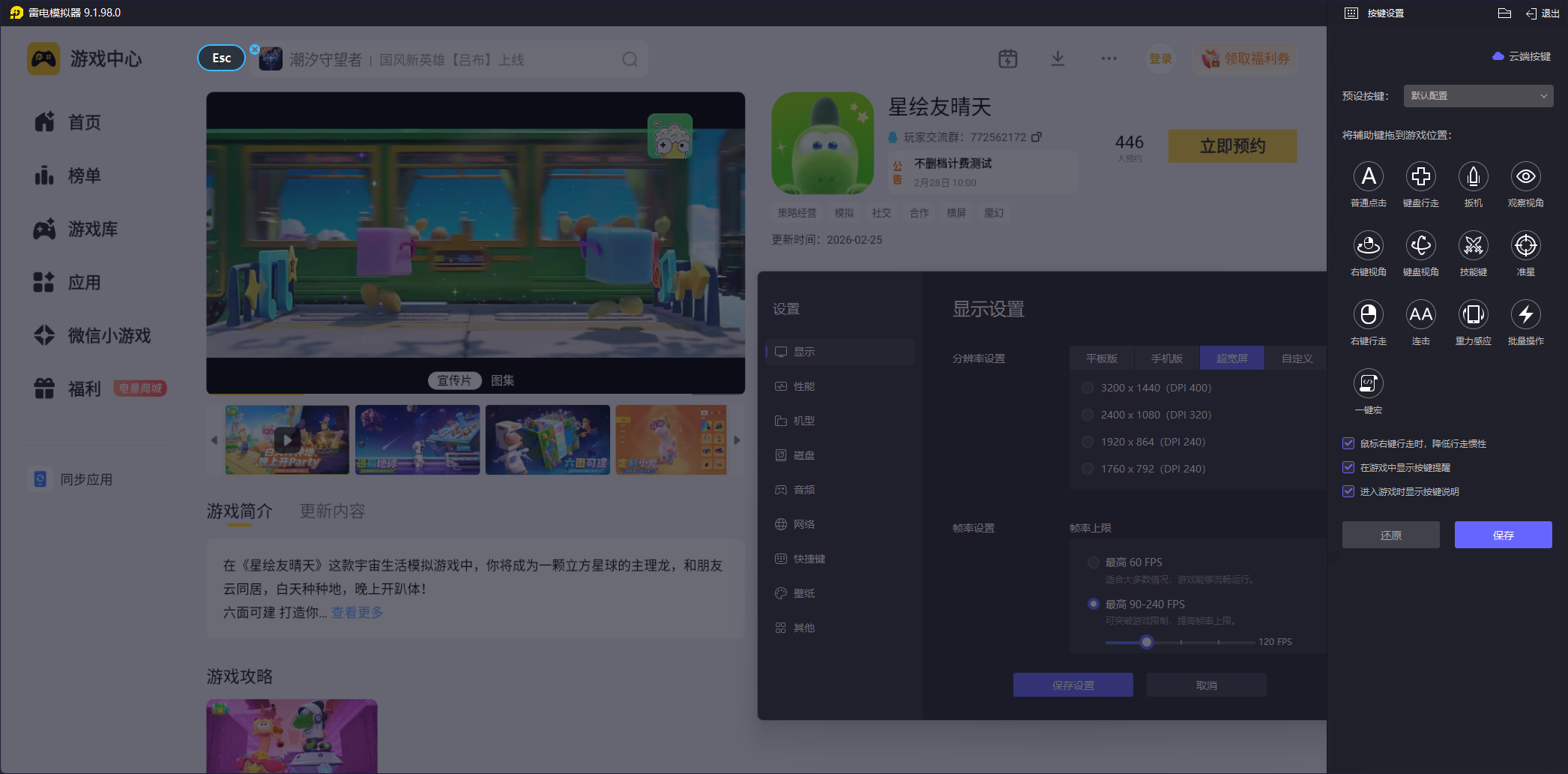 搭配键鼠操作,能彻底告别手机触屏误触,抛竿、提竿更精准。同时支持 165 高帧率运行,画面稳定流畅不卡顿,长时间钓鱼也能保持极佳体验。还能避免手机发烫、耗电快等问题,有效延长手机使用寿命。用雷电模拟器玩星绘友晴天,操作更顺手、画面更沉浸,轻松掌握钓鱼技巧,是电脑游玩的理想选择。