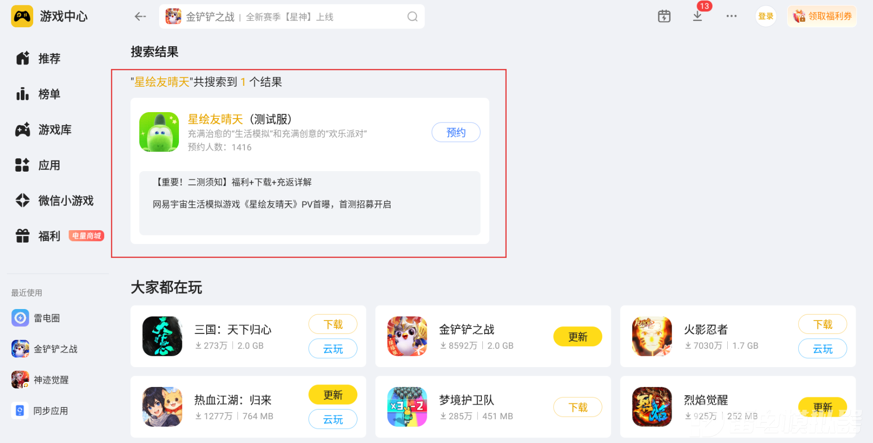 想要更畅快地体验星绘友晴天的各类玩法,在电脑上使用雷电模拟器游玩,能让整体游戏体验变得更加舒适,也能更好地感受游戏的每一处细节与趣味。