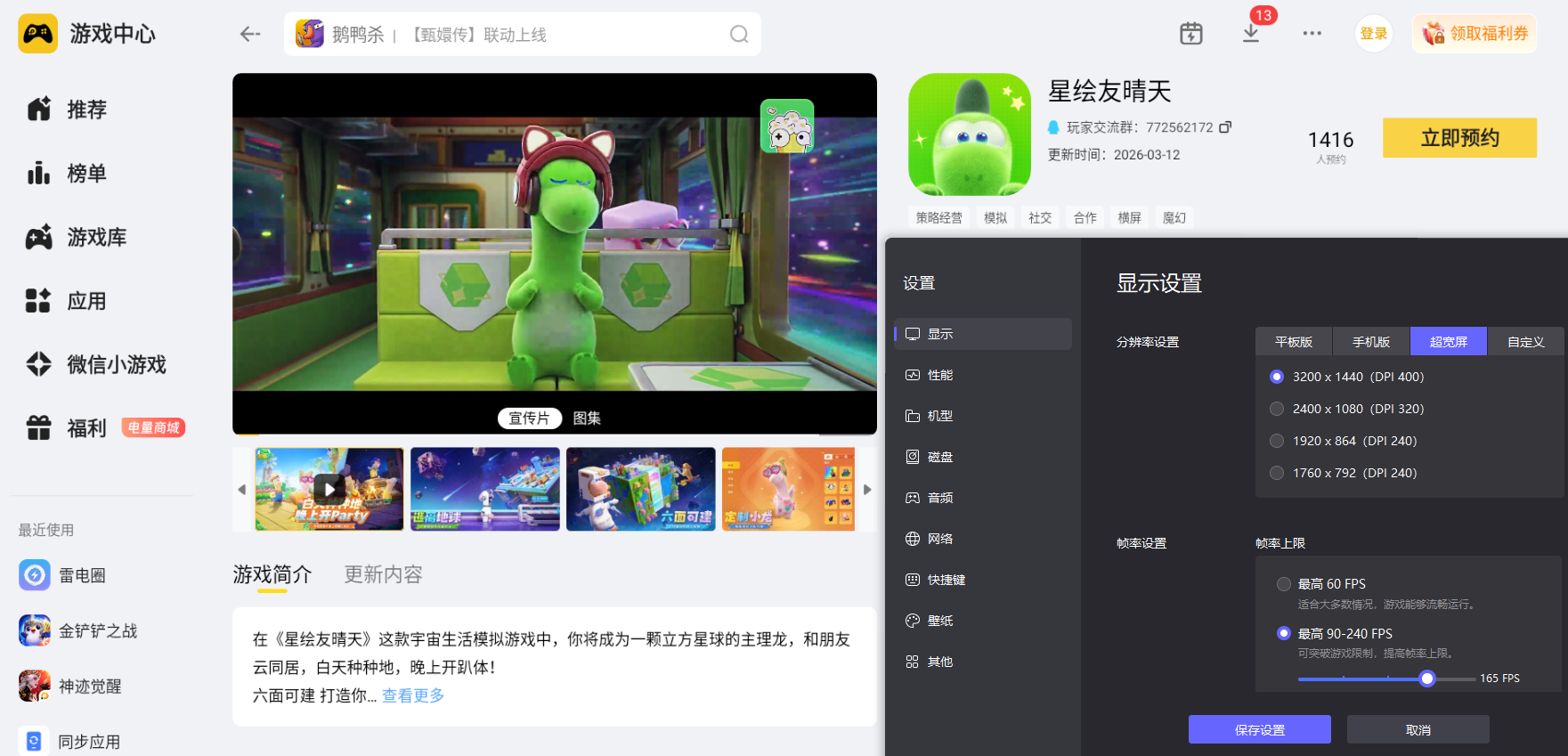 游戏里的星绘创作、星球场景、角色建模都有着精致的美术设计,细腻的色彩搭配与场景细节,需要更清晰的画质才能完整呈现,若是画质不够清晰,会错过很多美术细节。雷电模拟器搭配4K分辨率能够呈现高清的游戏画面,精准还原游戏里的每一处色彩与细节,不管是创作画作、探索场景还是经营星球,都能获得极致的视觉体验,让游戏观感更舒适。