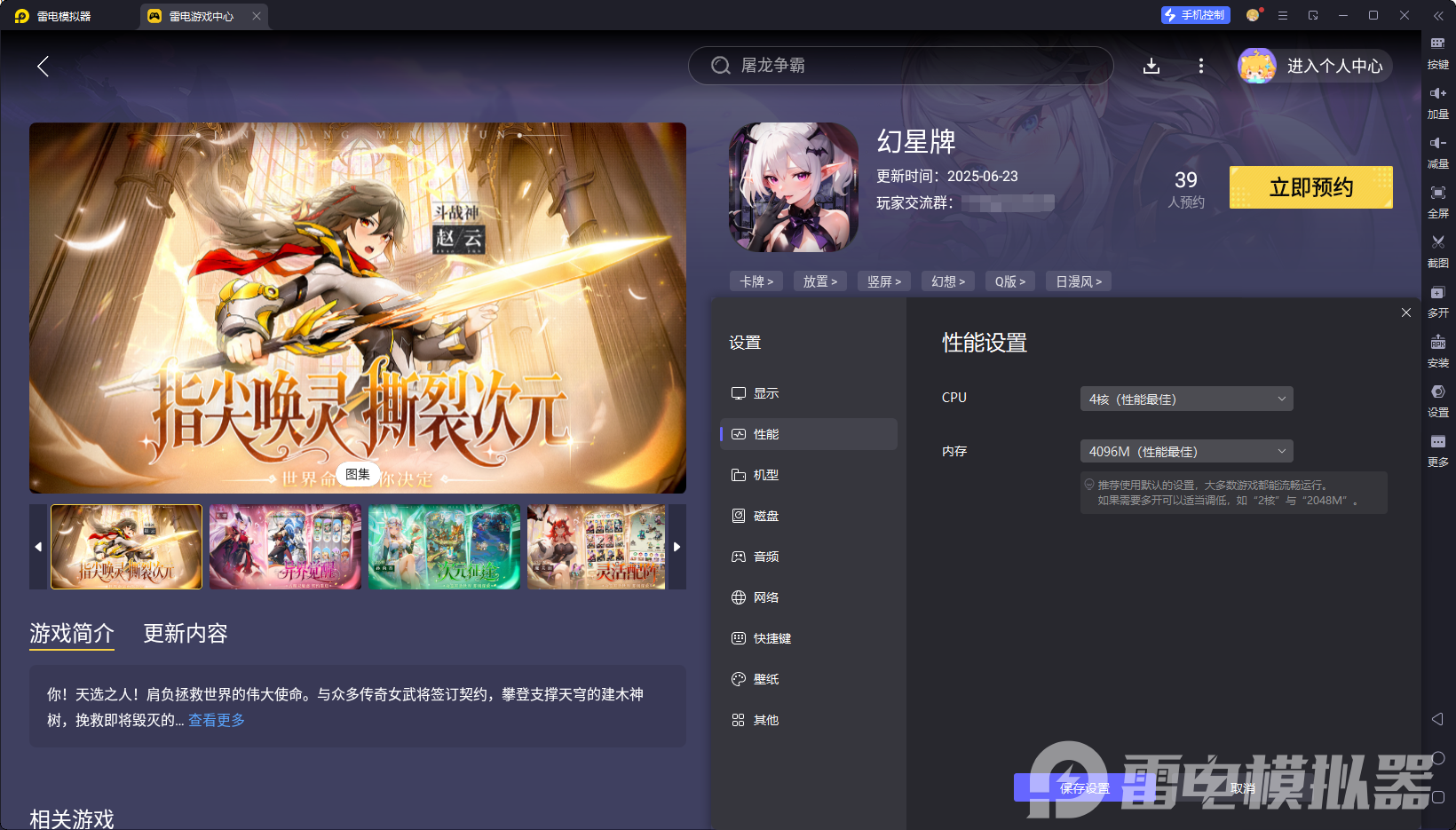 幻星牌模拟器怎么玩?幻星牌作为一款融合三国题材与美少女卡牌养成的热门手游,凭借其“一人成军”的养成模式和赛博神话画风吸引了大量玩家。若想在电脑大屏上流畅体验,雷电模拟器凭借高性能、多开支持及键鼠操控优势成为首选工具。以下是幻星牌模拟器的详细安装与优化教程,助你快速开启九州征程!