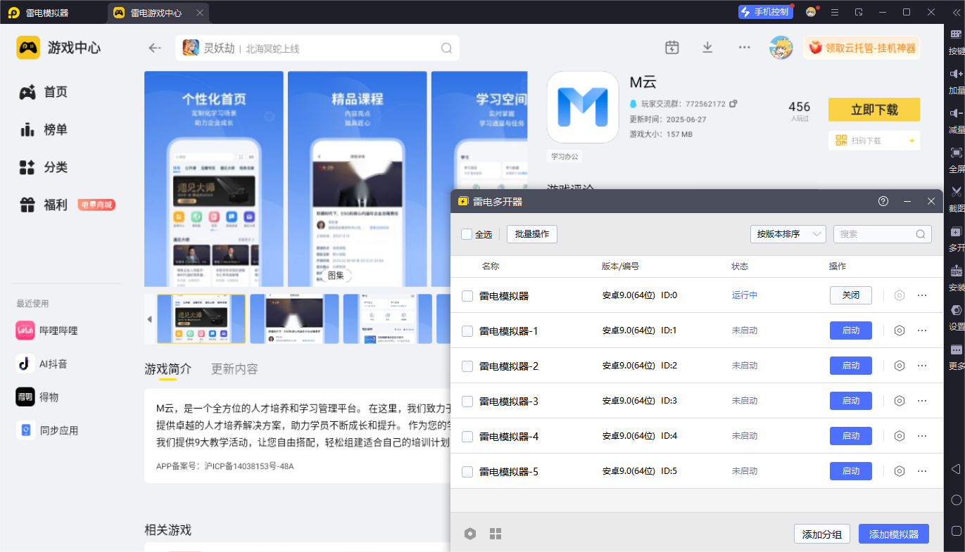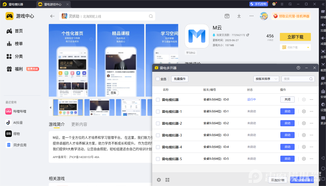 M云电脑版功能丰富,但在电脑上运行,雷电模拟器能为其提供更出色的支持。雷电模拟器凭借其独特优势,能让M云电脑版的使用体验更上一层楼。