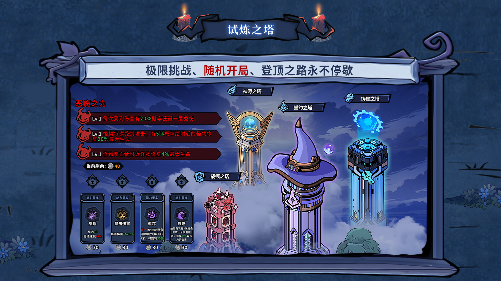 告别千篇一律的塔防套路,这里有颠覆性的技能插槽可编辑式核心玩法加持——每一局都是独一无二的冒险,变幻莫测的技能加成、畅爽解压的群魔物清屏、脑洞大开的流派构筑,让你在闯关路上时刻充满新鲜感与探索欲。