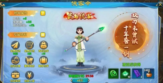 第二个是 68 元的一级侠客令,开与不开是两个游戏!