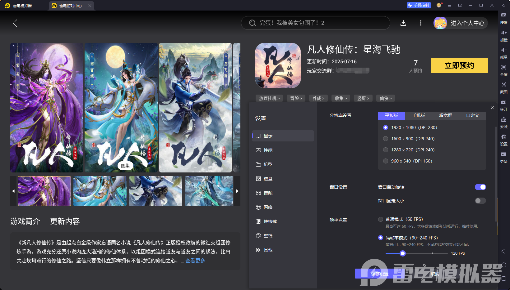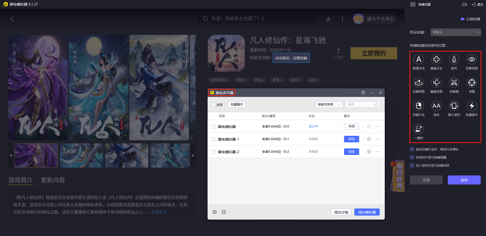 一、凡人修仙传星海飞驰电脑版(雷电模拟器)体验亮点