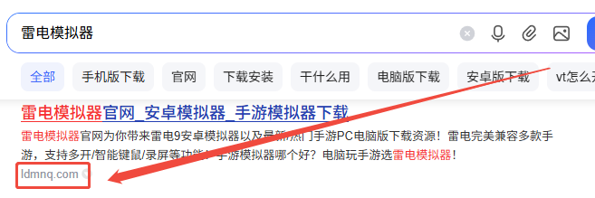 第一步,打开电脑浏览器,在搜索框输入“雷电模拟器”,点击搜索后需仔细辨别官网标识,认准域名ldmnq.com的官方网站点击进入,避免误入非官方渠道。