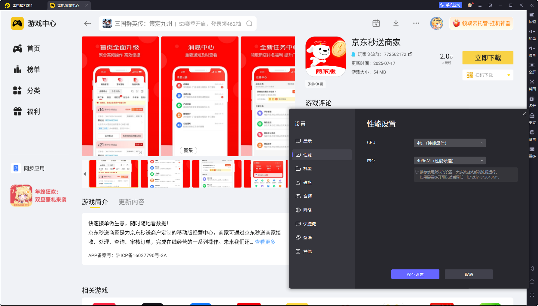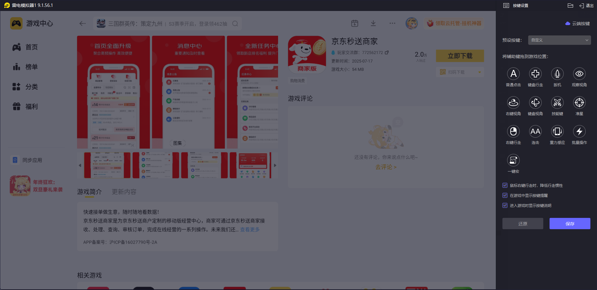 二、雷电模拟器——京东秒送商家电脑版的好帮手