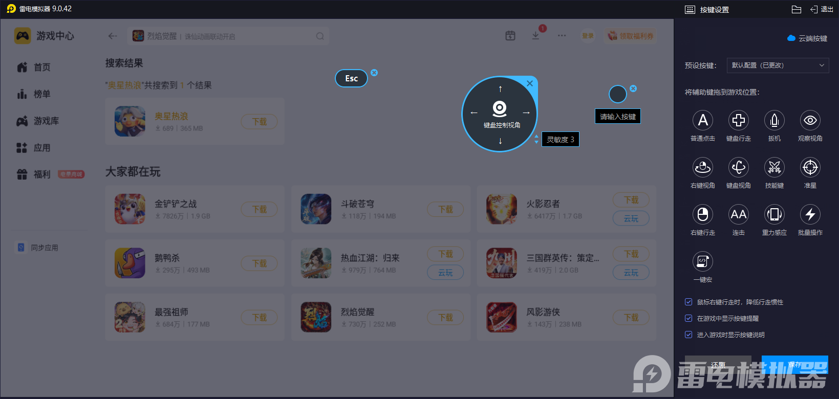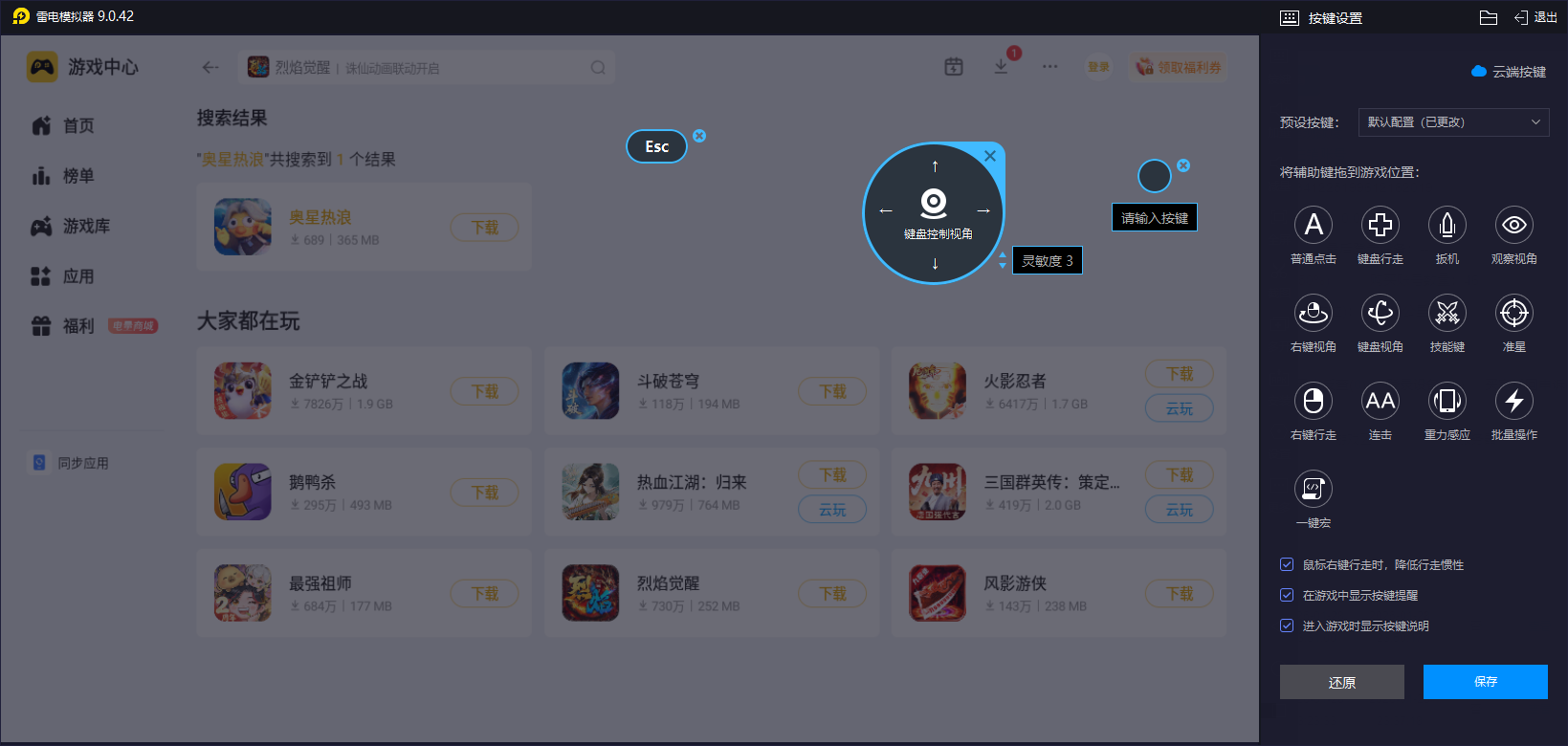当然了,小伙伴们也是可以去通过雷电模拟器来自定义不同键位的,比如wasd的移动和鼠标点击的组合等,从而让自身实现端游体验的快感,针对在“热浪竞速”关卡中,空格键起跳比触屏滑动更稳定;而浪花拼图模式可通过数字快捷键快速旋转方块,解谜效率也能更高。