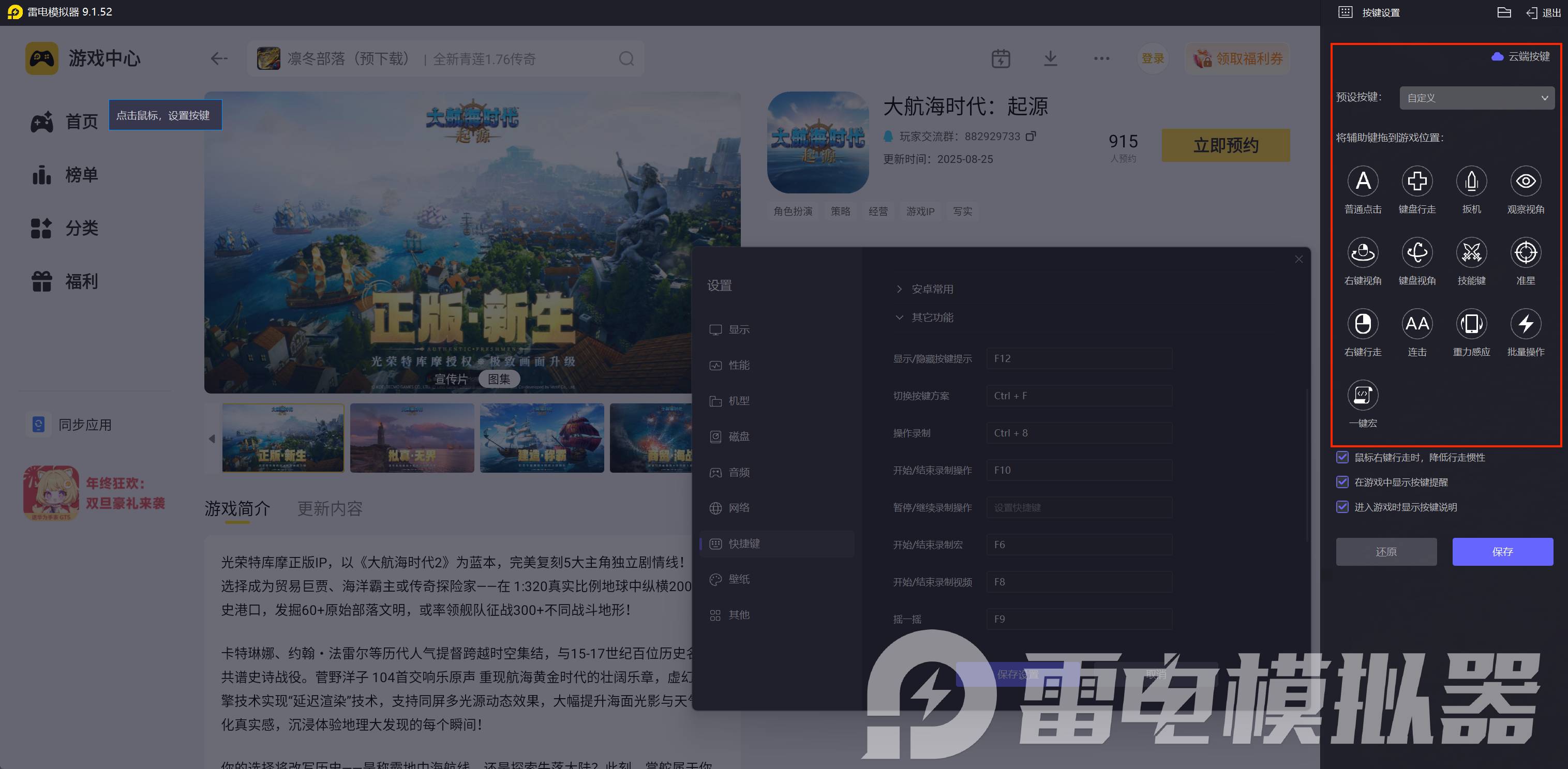 操作便捷高效:雷电模拟器支持键盘鼠标精准操控,航海方向调整、贸易商品选择、战斗指令下达等操作比手机触屏更灵活,可自定义快捷键组合,实现快速切换视角、使用技能等复杂操作,提高游戏操作效率。