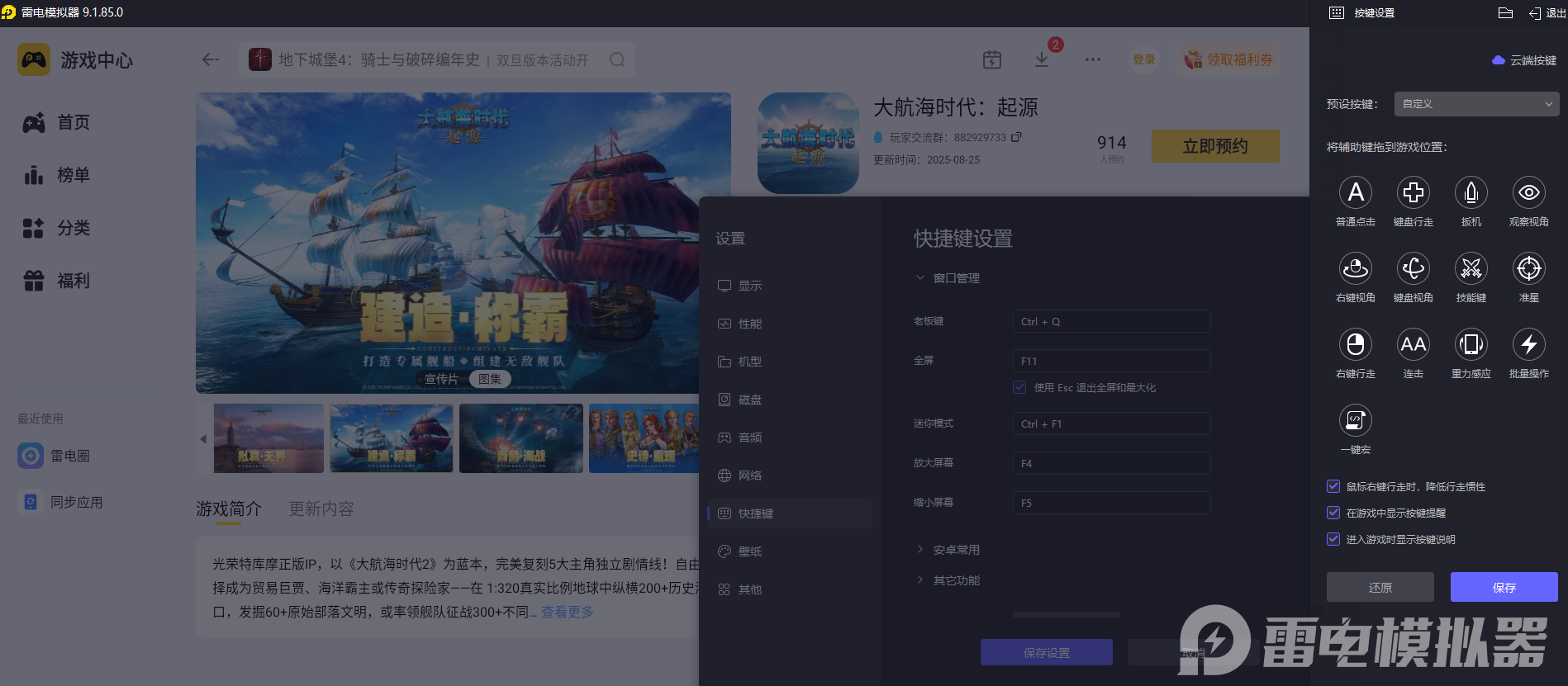 大家可以尝试下用雷电模拟器玩这款游戏,操作上能给舰队打造和使用带来很多便利。模拟器支持键鼠映射,还能可视化自定义按键,你可以把舰船转向、火炮发射、装货卸货这些操作分配到键盘和鼠标上,比手机触屏精准多了。战斗时,键鼠响应延迟低,能快速瞄准敌舰释放技能,不会因为触屏误触错过战机。