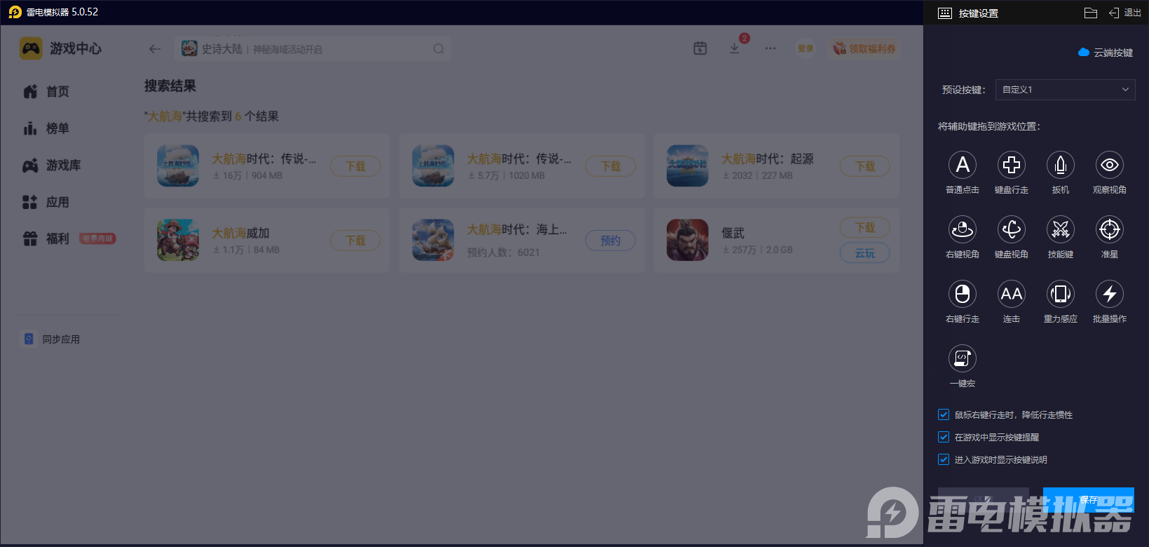 为了能让大家游戏效果更好,其实雷电模拟器也是做出了很多努力,比如自定义的wasd移动掌舵,更是有着鼠标调整炮击角度,规避风暴或暗礁时操作更精准,快捷键绑定贸易菜单和技能释放等也是可以的,如此也可有效帮助玩家避免误触等问题。